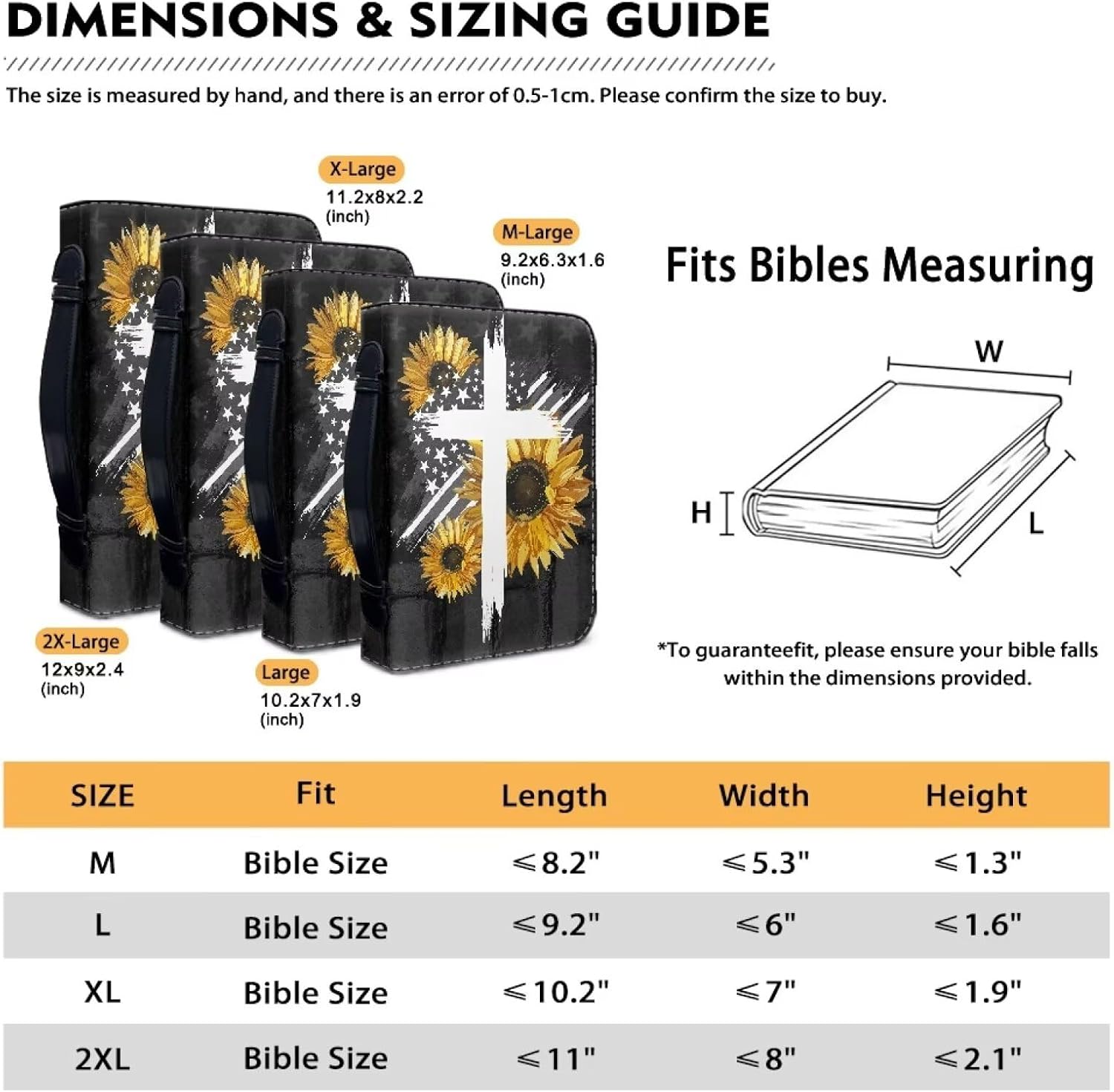 Materiale di alta qualità: questa borsa biblica è realizzata in pelle PU di alta qualità e cerniere in metallo. Morbido, leggero, facile da pulire, resiste all'usura del vento e del sole, può proteggere bene la Bibbia, i libri dai graffi. Diverse dimensioni: diverse dimensioni di sacchetti biblici tra cui scegliere: M: 23,4 cm L x 16 cm W x 4,1 cm H; L: 26,9 cm L x 7 "W x 1,9 "H; XL: 28,4 cm L x 20,3 cm W x 5,6 cm H; XXL: 30,5 cm L x 22,9 cm Larghezza x 6 cm. 1 cm di altezza. Si prega di controllare attentamente la tabella delle taglie prima di acquistare questo astuccio per bibbia personalizzato in pelle. Grande capacità: la borsa biblica ha molto spazio per riporre articoli di cancelleria, puoi mettere altre cose oltre alla Bibbia, come: portafoglio, carta di credito, bollettino della chiesa, diario di preghiera, segnalibro, penna, ecc., rendendo il tuo spazio più pulito, ordinato e conveniente. Motivi personalizzati: vari motivi alla moda, delicati ed eleganti (come ad esempio: bandiera americana, farfalla, funghi, aztechi, marmo, galassia, fiori, cavalli, leopardo, tie-dye ecc.) Con processo di produzione di stampa di alta qualità che non sbiadisce. Regalo perfetto: la nostra copertina per bibbia può essere utilizzata come borsa, diario, borsa per il trucco, portafoglio, borsa per appunti, organizer per riviste, copertina per manuali, ecc. Regalo perfetto per familiari, amici e colleghi per compleanni, vacanze, festa dell'insegnante, festa della mamma, giorno del ringraziamento, ecc.