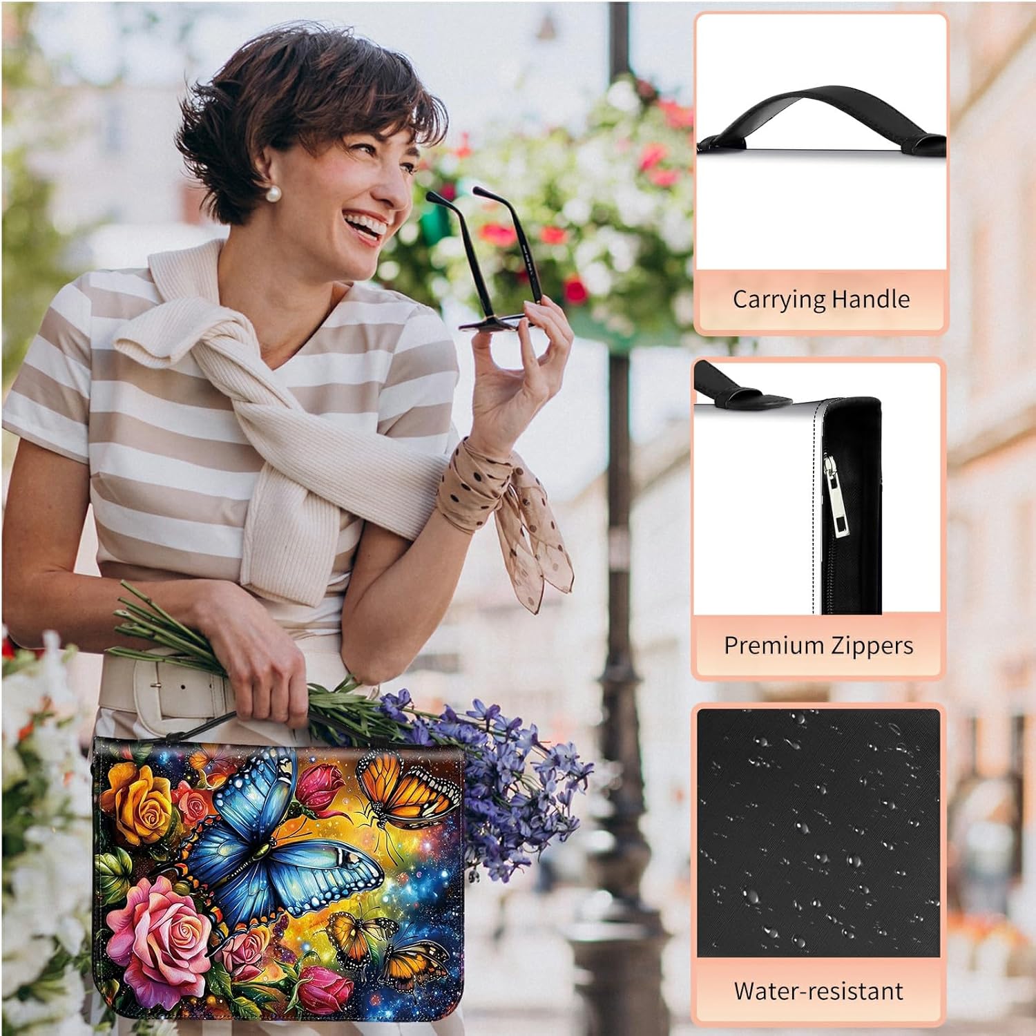 Grandi dimensioni: è una copertina più grande per lo studio della Bibbia. È disponibile in una dimensione generosa di 27,7 x 20 x 5 cm, la copertina resistente è ideale per la maggior parte dei libri biblici, come la Bibbia di studio ESV, la Bibbia di studio KJV e la Bibbia di studio dell'applicazione della vita e molti altri libri. Copertine per bibbia spaziali da donna: contiene tutte le tue necessità. Ha più tasche interne che consentono di riporre evidenziatori biblici, penne, diari di preghiera, bollettini della chiesa, note di sermone, biglietti di preghiera, note o segnalibri. Può essere un eccellente supporto per bibbia, custodia per diari, borsa per cosmetici per trucco, custodia per tablet, borsa per studio biblico, ecc. Custodia protettiva per la Bibbia: custodia per bibbia in pelle PU di alta qualità con cerniera in metallo resistente mantiene la Bibbia sicura e pulita. La morbida copertura interna può proteggere la Bibbia o l'iPad da graffi, ed è facile da pulire e resiste all'usura quotidiana Manico piatto: il manico è facile da tenere, con questa simpatica borsa biblica puoi facilmente trasportare la tua Bibbia e andare avanti e indietro per lo studio della chiesa e della Bibbia. Bel regalo: la borsa biblica dal design unico è una meravigliosa idea regalo per la famiglia e gli amici a Natale, Halloween, Pasqua, feste religiose.