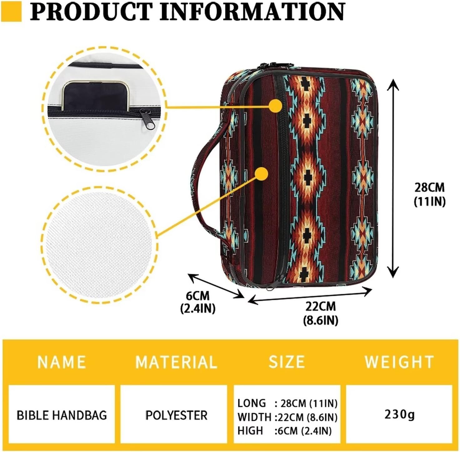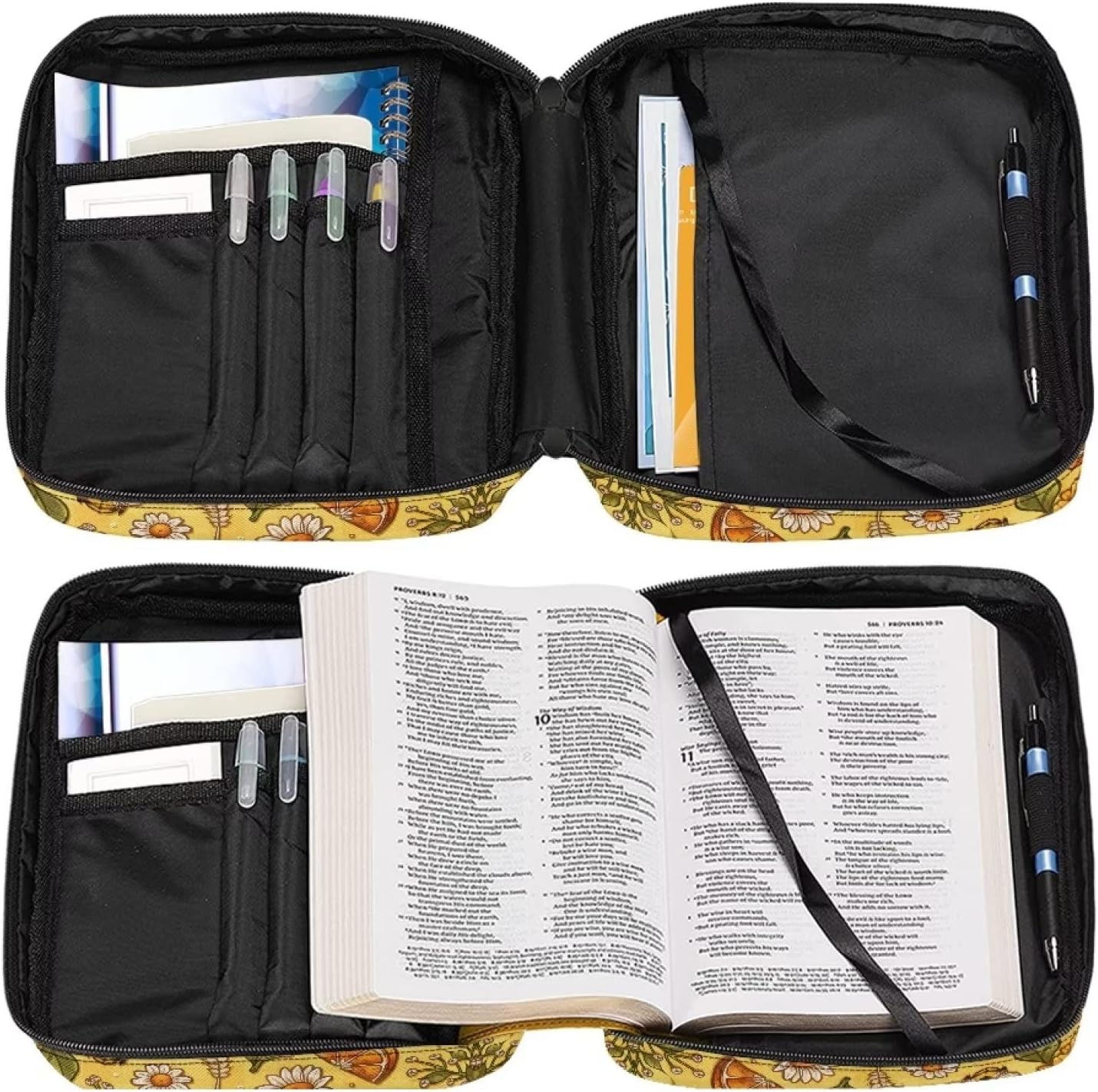 Materiale: questa custodia per bibbia è realizzata in tela di poliestere di alta qualità, leggera e resistente, morbida e robusta. Può proteggere la tua Bibbia o libro da graffi. Dimensioni: 28 cm x 6 cm x 22 cm, questa borsa Bibbia multifunzionale ha una tasca frontale con cerniera, l'interno ha 2 tasche laterali, 1 tasca verticale, 1 scomparto per segnalibri, 4 scomparti per penne e 1 cintura segnalibro. Multiuso: può essere utilizzato come porta bibbia, custodia per diario, copertina per libri in brossura, borsa cosmetica per trucco, custodia per tablet, borsa per libri di studio biblico, ecc. Le tasche interne aggiuntive consentono di riporre evidenziatori biblici, penne, diari di preghiera, bollettini della chiesa, note di sermone, biglietti di preghiera, appunti Portatile: la copertina della Bibbia è leggera e ha una robusta maniglia in modo da poterla portare ovunque, come scuole, biblioteche. Protable quando si va tra la scuola domenicale, la chiesa, la chiesa dei bambini e da e per l'auto. Ottimo regalo: le copertine per libri biblici sono progettate con vari motivi e colori diversi, e puoi anche personalizzare immagini personalizzate sulla borsa della Bibbia, adatte per adulti, donne, uomini, bambini, ragazzi e ragazze, un regalo perfetto per compleanno, Natale, giorno del Ringraziamento per la tua famiglia e gli amici