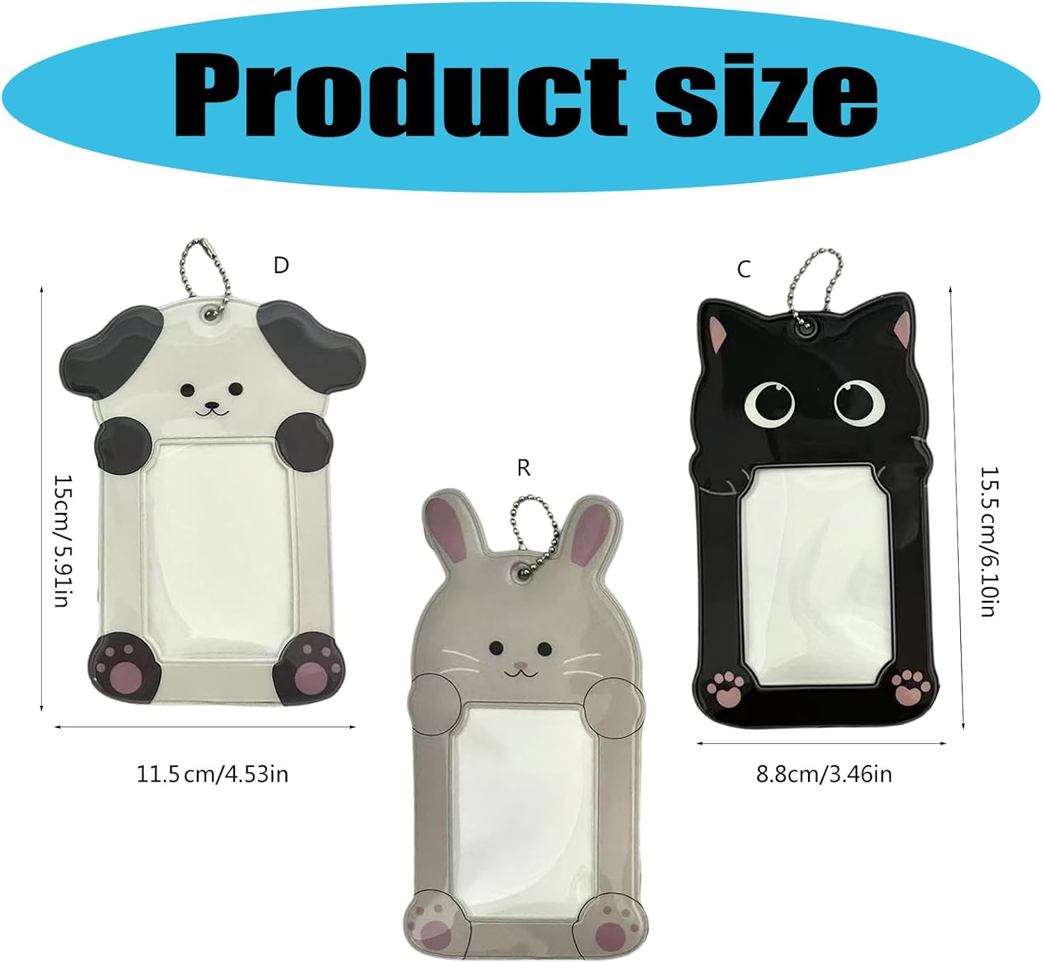 Proteggi la tua carta di credito e la tua carta fotografica preferita da graffi e pieghe con la nostra custodia a forma di animale, con ciondolo a catena di perline, che assicura che la tua carta rimanga sicura e intatta. Realizzata in PVC resistente all'acqua, questa custodia per fotocard è anche accattivante accessorio portachiavi per decorare portachiavi, borsa, borsa da scuola, portafoglio, portafoglio, bagaglio da viaggio e molto altro ancora. Ideale per donne, studentesse, professionisti e collezionisti di carte, questa custodia per carte fotografiche aiuta a gestire e proteggere la maggior parte delle carte fotografiche in modo efficiente, come carte fotografiche da 3 pollici, carta dell'autobus, carta dello studente, carta d'identità, badge, carte di accesso e altro ancora. Molto adatto per pendolarismo quotidiano, viaggi di lavoro o, consente di organizzare e trasportare le tue carte e altre piccole foto senza sforzo.