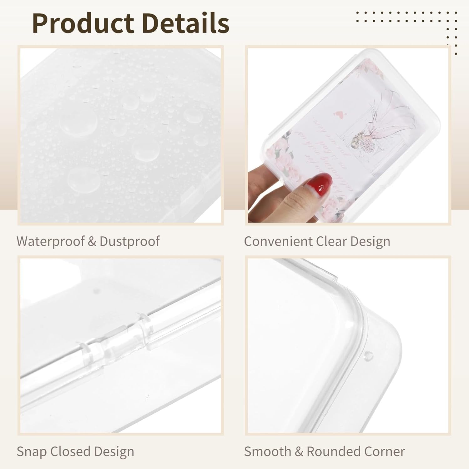 Efficiente stoccaggio delle carte da gioco: queste 24 scatole di plastica trasparenti sono una fantastica decisione per installare e riporre carte da gioco, carte transazione, oltre ad altri piccoli beni, in modo che la tua selezione rimanga ordinata e protetta Costruzione affidabile in plastica pp: queste custodie per riporre carte, prodotte con plastica pp, sono prodotte per resistere all'usura quotidiana senza crepe o rotture; solidità affidabile e visione chiara sono date per un uso frequente della carta Chiusura sicura a scatto: grazie a queste scatole che dispongono di una chiusura sicura a scatto con lati senza sforzo, le carte da gioco e gli oggetti da collezione sono protetti da sporcizia e umidità; viene consegnata una conservazione sicura per i tuoi oggetti inestimabili Piccola e trasportabile: ogni scatola di plastica trasparente misura 10,2 x 7,6 x 2,5 cm, quindi è abbastanza compatta da adattarsi a cartelle o sacchetti; le tue carte da gioco o biglietti da visita possono essere trasportati ovunque Disposizione versatile: queste scatole trasparenti possono anche riporre piccoli oggetti come gioielli, pietre o monete, ma potrebbero andare bene per giocare a carte; il piano trasparente consente un rapido riconoscimento del contenuto senza sbloccare la scatola
