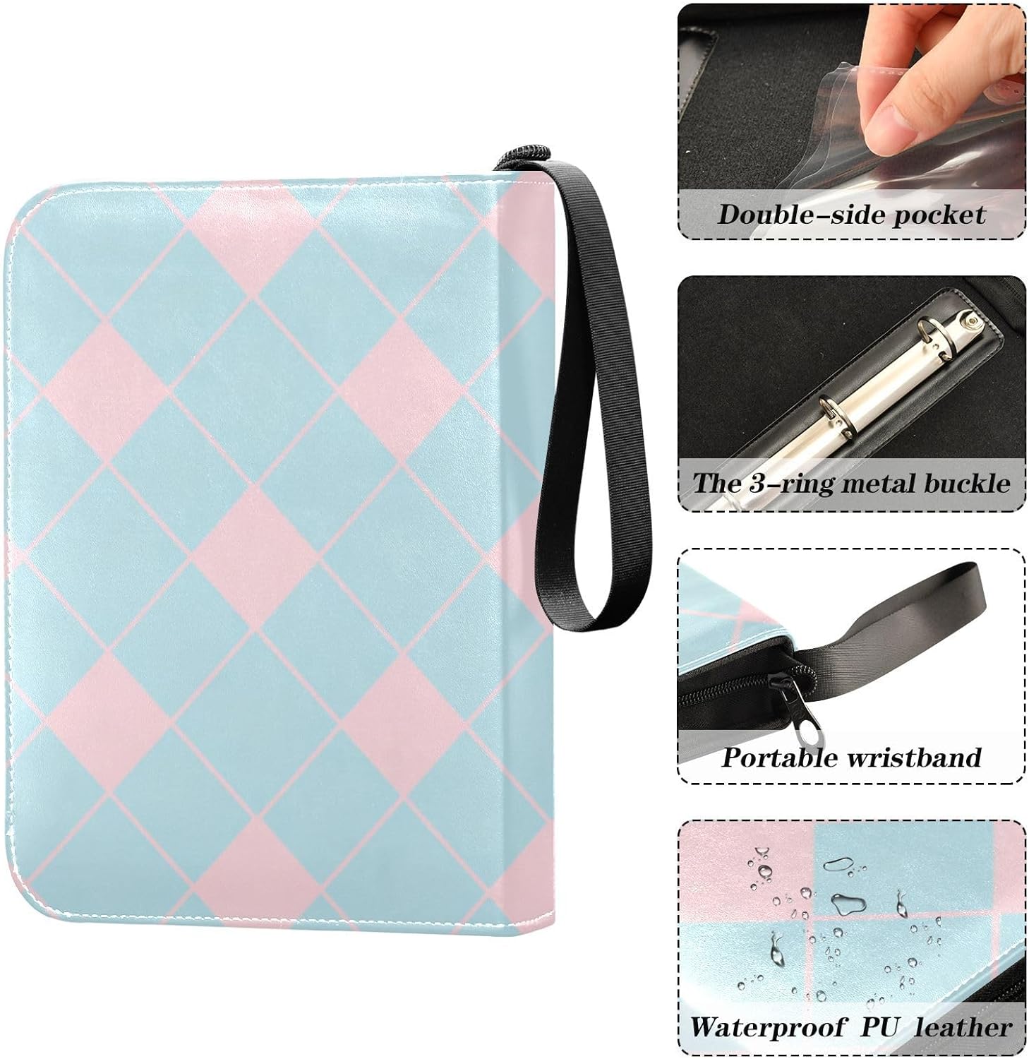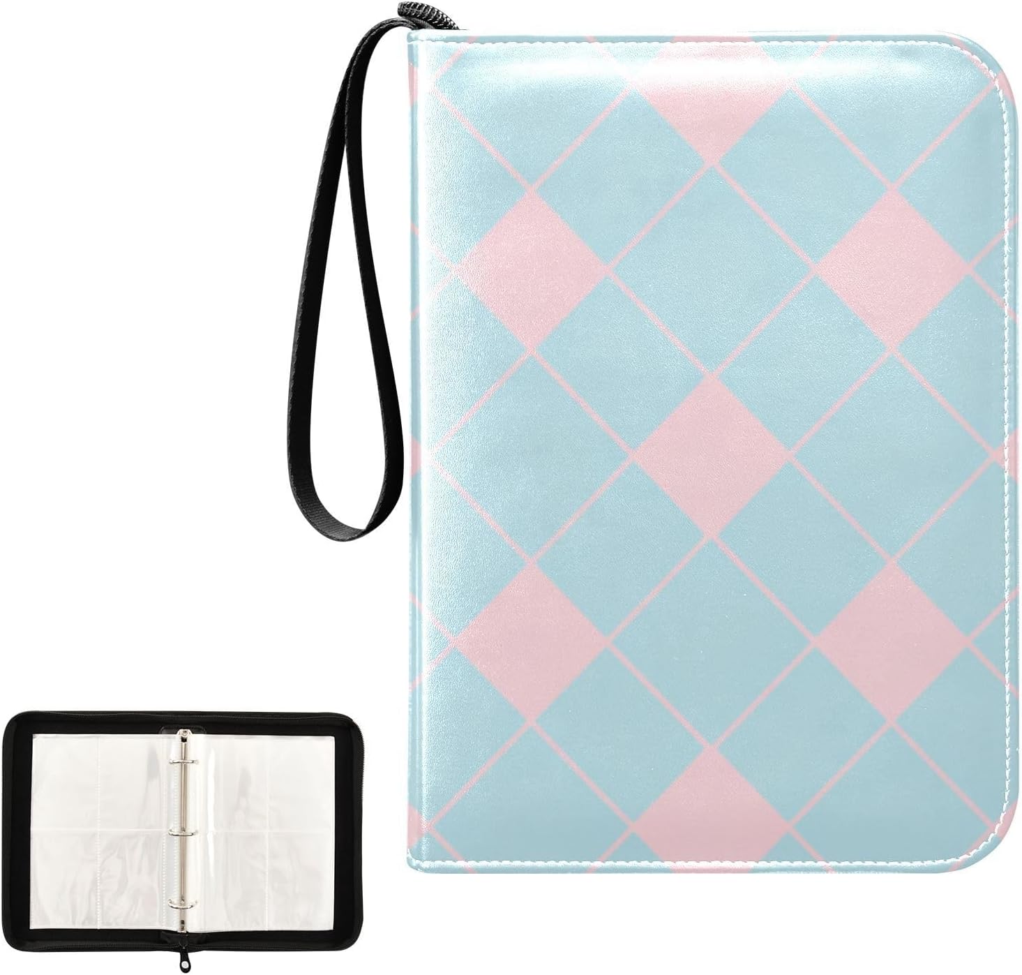 Custodia per carte sportive da collezione, per carte da baseball, carte da calcio, TCG MTG, protezione per carte da collezione, 50 pagine fino a 400 carte, motivo a rombi azzurri e rosa
