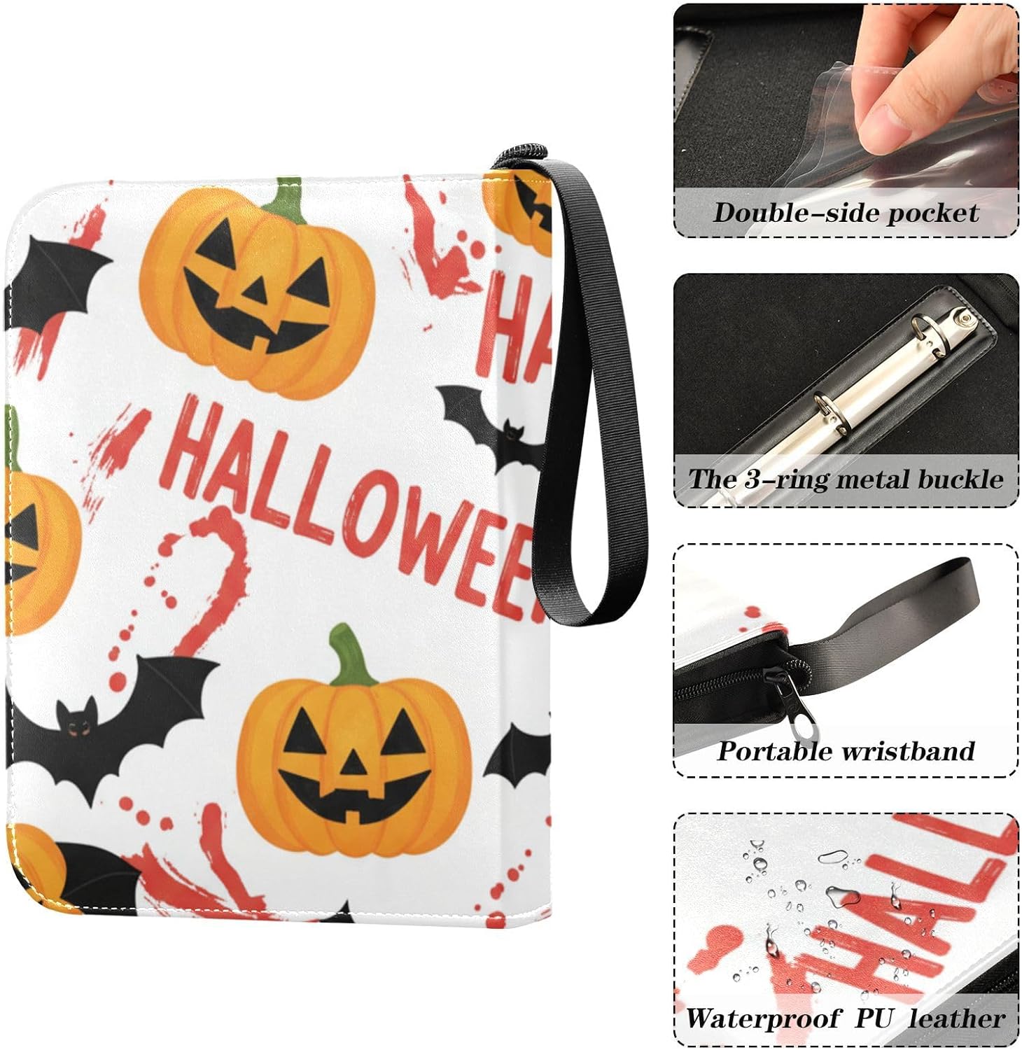 Custodia per carte sportive da collezione, per carte da baseball, carte da calcio, TCG MTG, protezione per carte da collezione, 50 pagine fino a 400 carte, motivo pipistrello zucca di Halloween