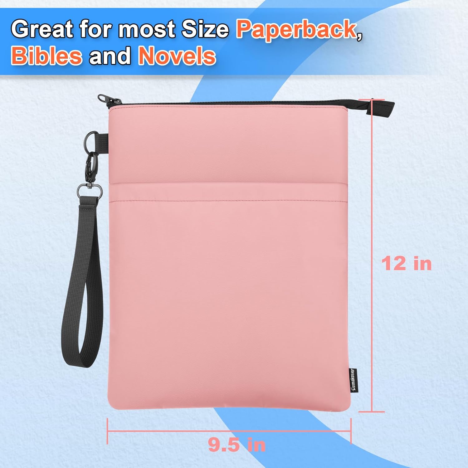 Custodia per libri con cerniera, custodia protettiva per libri in brossura e libri con copertina rigida, custodia per il trasporto con tasca frontale e tracolla per gli amanti dei libri, lavabile