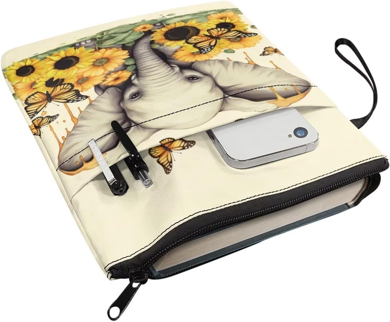 Custodia per libri con stampa di cavallo e girasole con cerniera e tasca frontale, custodia impermeabile per ragazzi e ragazze, lettori bibliotecari, accessori per club regali protettori
