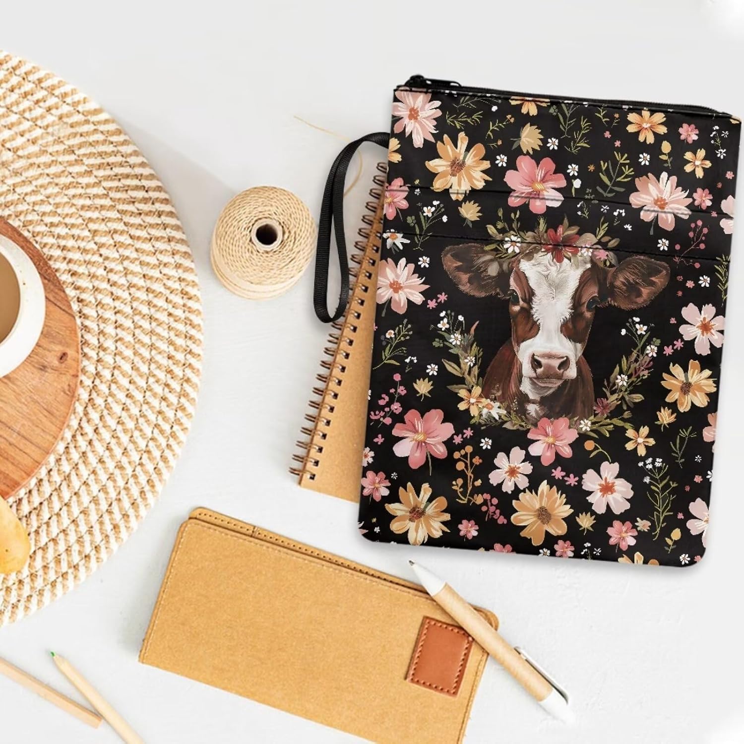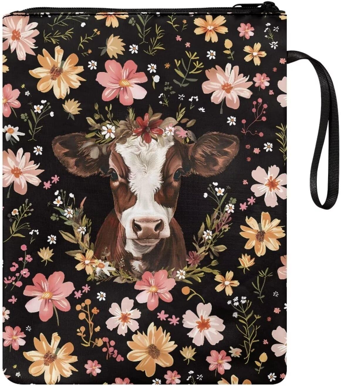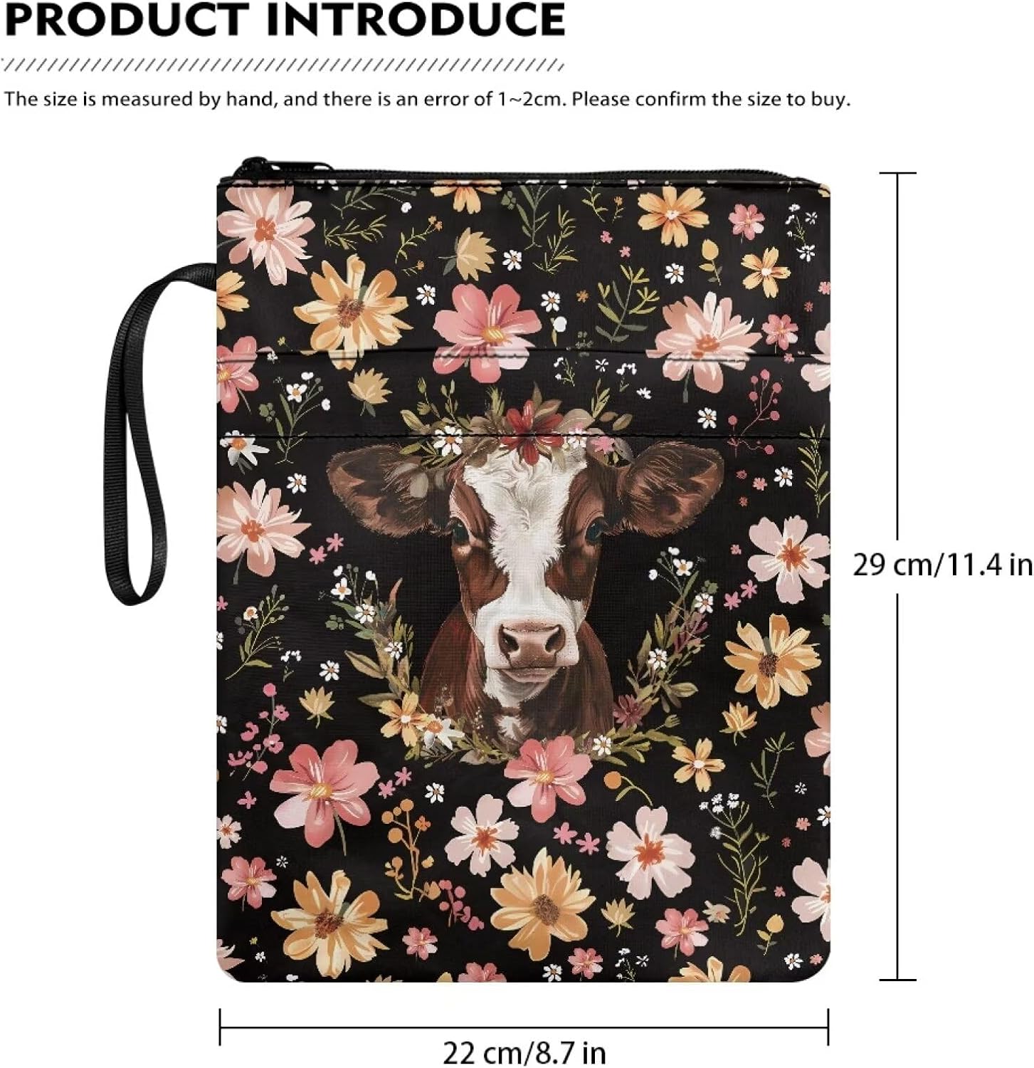 Custodia per libri con stampa di mucca, con cerniera e tasca frontale, impermeabile, per ragazzi e ragazze, lettori e bibliotecari, accessori per club