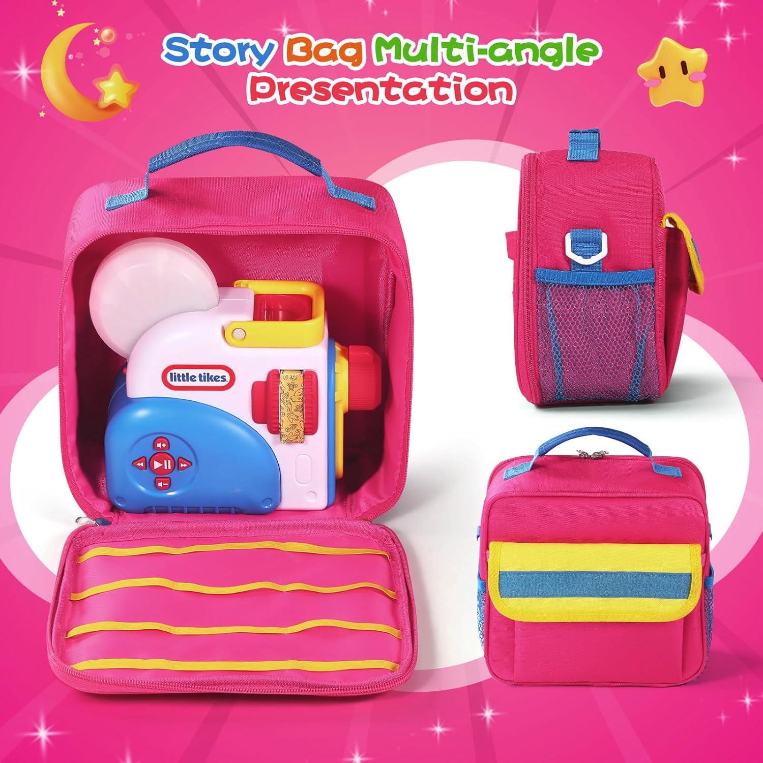 Custodia da viaggio versatile: la scatola per libri Dream Machine è progettata per contenere saldamente la tua macchina per storie e molte collezioni di storie, tra cui Storytime/Little Golden Book, rendendolo il compagno perfetto per la narrazione in movimento. Materiale durevole: realizzata con materiali durevoli di alta qualità, questa borsa presenta una superficie impermeabile e resistente agli urti che protegge da graffi, urti, polvere e danni, garantendo che la tua amata macchina e libri rimangano in perfette condizioni. Pratiche opzioni di trasporto: progettata per la flessibilità, questa borsa include una robusta tracolla e una tracolla staccabile, offrendo due comode modalità di trasporto che si adattano alle tue esigenze durante il viaggio. Design liscio a doppia cerniera: la chiusura a doppia cerniera della custodia da viaggio Little Tikes garantisce un'esperienza fluida e sicura, consentendo un facile accesso alla macchina delle storie e ai libri migliorando l'usabilità generale. Contenuto della confezione: 1 custodia da viaggio per libri Little Tikes Story Dream Machine Starter Set (due colori opzionali)