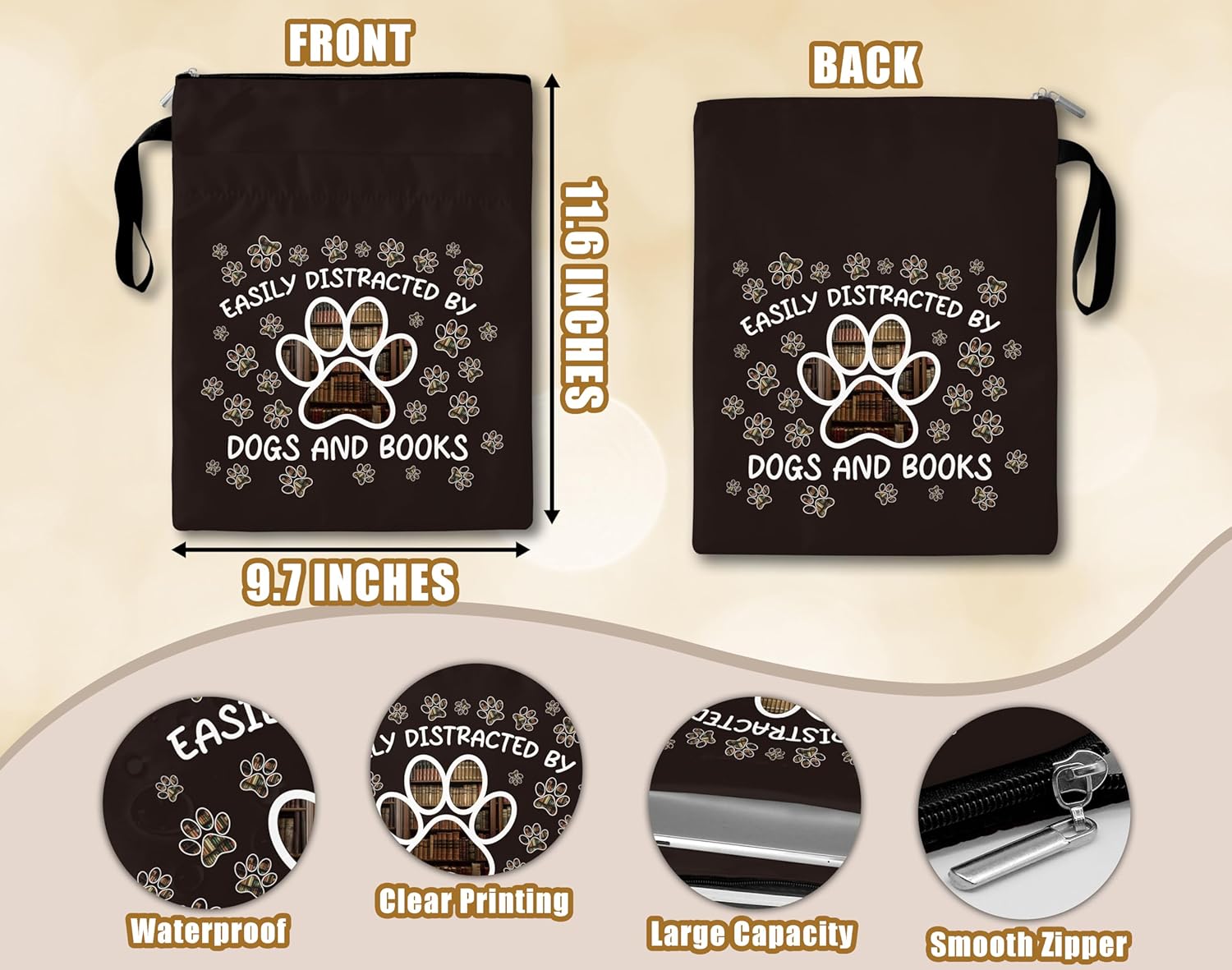 Dimensioni del prodotto: questa custodia per libri misura 29 x 23 cm, offrendo abbastanza spazio per ospitare facilmente i libri che devi portare con te. Inoltre, è realizzato in materiale impermeabile, garantendo che i libri rimangano protetti da eventuali danni. Protezione elegante: questa custodia per libri presenta un design alla moda con cerniera che non solo mantiene i tuoi libri al sicuro, ma aggiunge anche un tocco di eleganza. Immagina di infilare il tuo libro tascabile preferito in questa custodia protettiva, sapendo che è protetto da eventuali danni mentre sei in viaggio. Uso versatile: questa custodia non è solo per libri! Usalo per riporre diari, tablet o anche come elegante pochette per le uscite. Immagina di andare al tuo caffè preferito con questa elegante custodia, combinando senza sforzo praticità e stile. Idea regalo premurosa: alla ricerca del regalo perfetto per un compleanno o una vacanza? Questa custodia per libri è un regalo ideale per qualsiasi donna o bibliotecaria nella tua vita. Immagina la gioia sul loro viso quando scartano questo accessorio elegante e pratico, un must per ogni amante dei libri.
