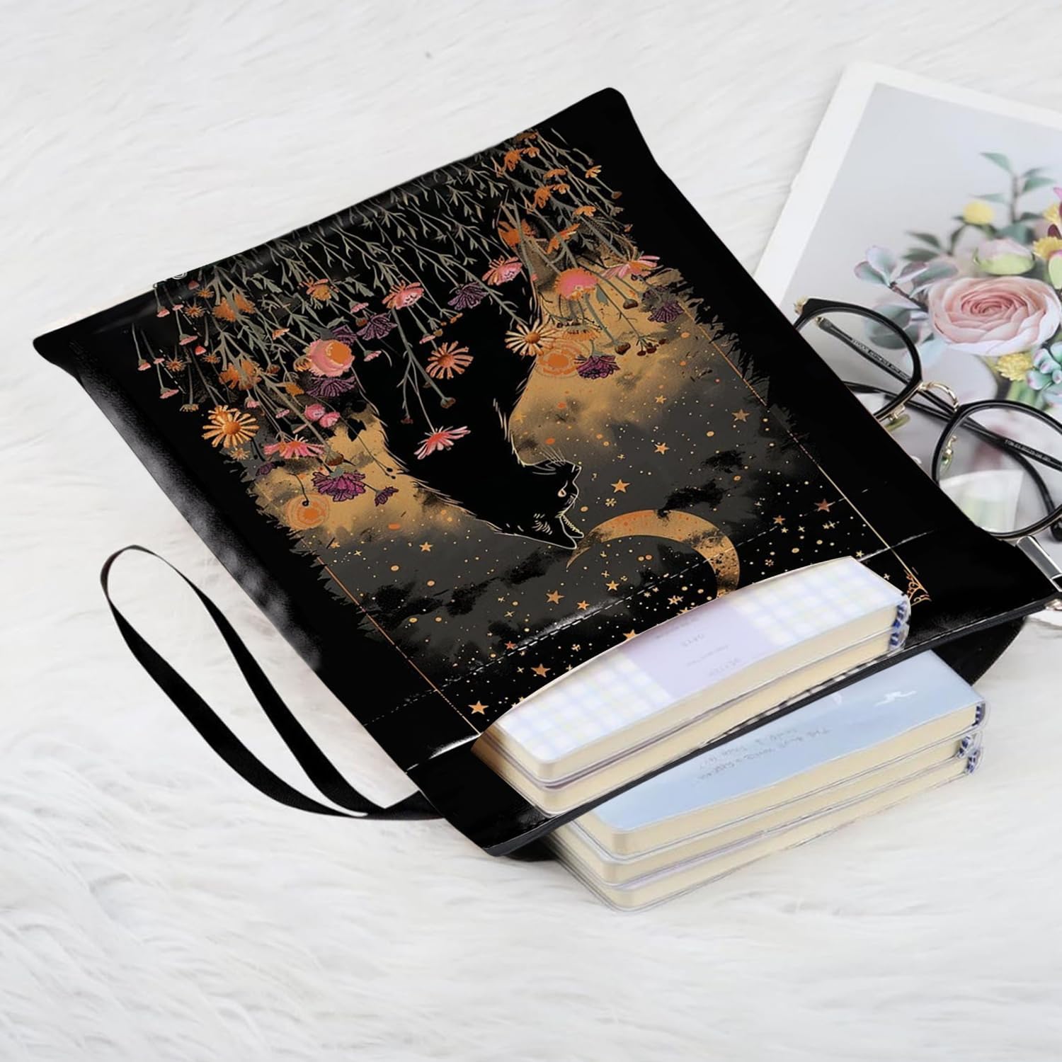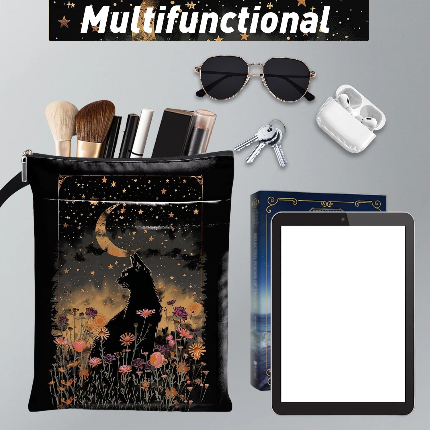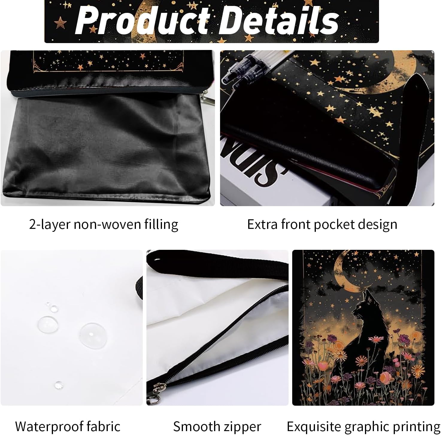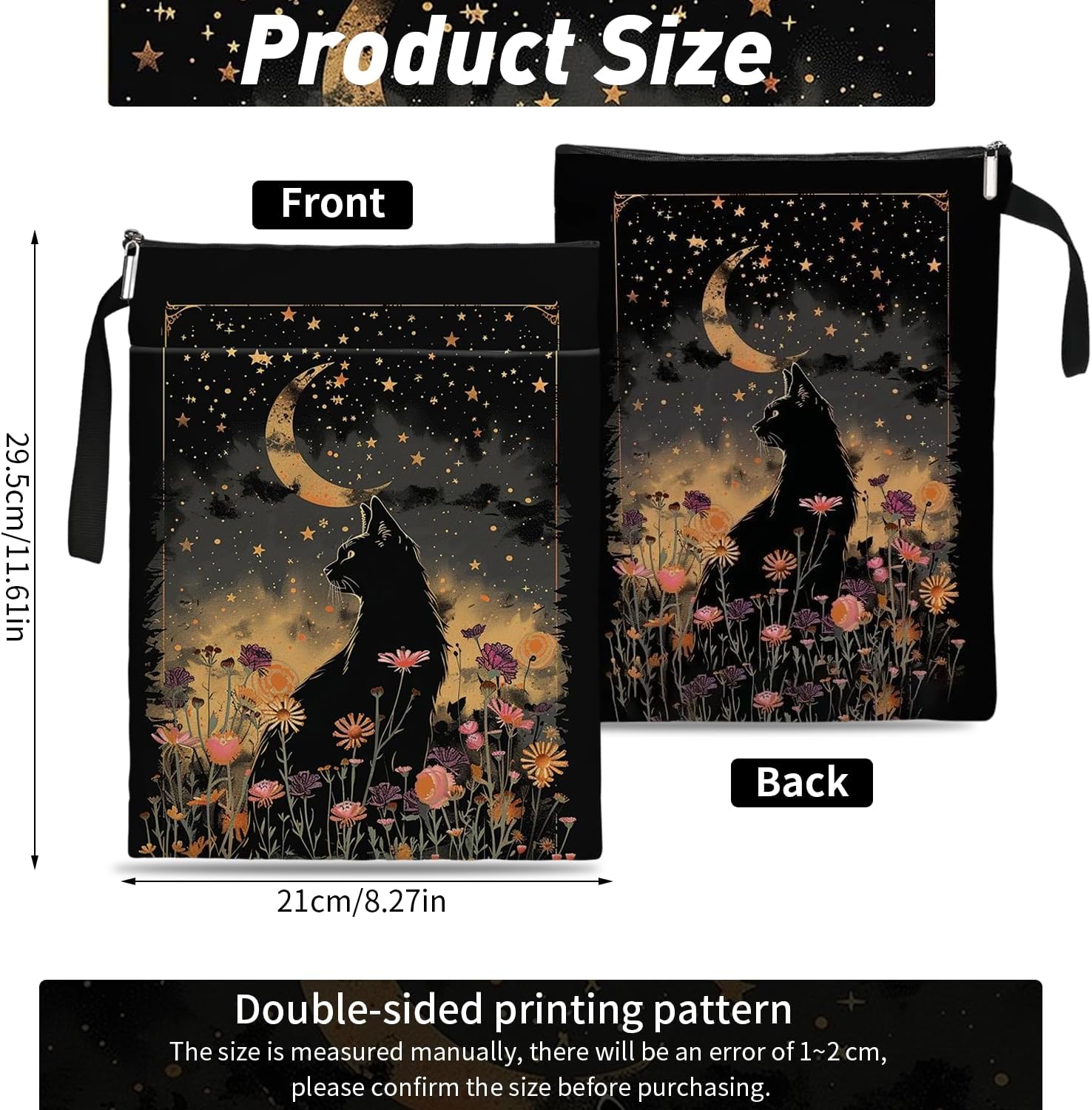 Protezione premium: questa copertina per libri con cerniera è realizzata in tela impermeabile di alta qualità, che può efficacemente prevenire l'arricciamento e l'umidità. È una scelta ideale per pendolari e amanti dei libri di viaggio Design unico: la custodia per libro progettata con una parte stravagante a forma di gatto nero aggiunge fascino giocoso ai tuoi oggetti essenziali letterari, ideale per mantenere i tuoi libri al sicuro durante il viaggio Leggera e affidabile: la copertina per libri adotta una chiusura a cerniera liscia di alta qualità per fornire molteplici protezioni. Non c'è bisogno di preoccuparsi che libri o cancelleria cadano. Con le sue dimensioni compatte, può essere piegato e trasportato a piacimento, servendoti sempre e ovunque Dimensioni adatte: la copertina per libri misura 29,5 x 21 x 0,6 cm, adatta per la maggior parte dei libri. La copertina del libro viene fornita anche con una borsa aggiuntiva, perfetta per quaderni, piccoli diari, articoli di cancelleria e anche alcune piccole decorazioni Ampia gamma di utilizzi: queste copertine per libri possono essere utilizzate per proteggere libri, libri di testo o quaderni ed è adatta per studenti, insegnanti, scrittori, è ideale per gli amanti dei libri di tutte le età e occasioni