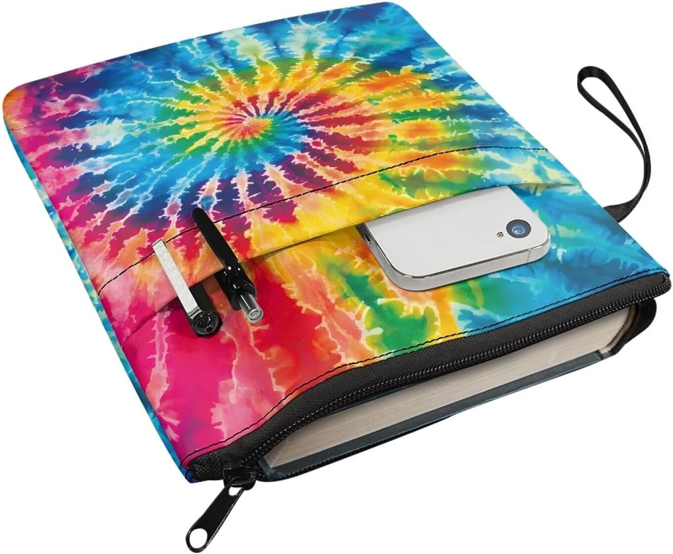 Custodia per libro, color arcobaleno, colorante batik, borsa con passante per maniglia, lavabile, per amanti, regali di libro, libri, protezione, pounch con chiusura lampo