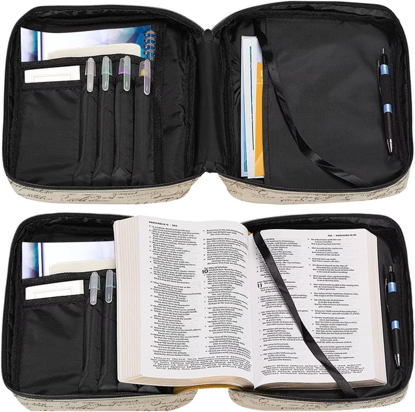 Materiale: la custodia per bibbia è realizzata in pelle PU, impermeabile, portatile, leggera, facile da pulire, di supporto e non si piega facilmente, protegge la Bibbia dall'usura. Dimensioni: M 23,4 x 4,1 x 16 cm, L 25,9 x 4,8 x 17,8 cm, XL: 28,4 x 5,6 x 20,3 cm, 2XL: 30,5 x 6,1 x 22,9 cm. Offriamo 4 misure adatte per la Bibbia o altri libri di diverse dimensioni. Prima dell'acquisto, si prega di misurare le dimensioni della Bibbia. Conservazione: la borsa Bibbia viene fornita con un manico portatile, 3 scomparti per penne all'interno, più tasche organizzative interne, che possono contenere annunci in chiesa, note di sermone, carta, biglietti di preghiera, telefoni cellulari, quaderni e altri oggetti, nonché cinghie per segnalibri. Multifunzionale: questa copertina per bibbia può essere utilizzata anche come copertina per libri, astuccio, borsa per il trucco, valigetta, borsa da viaggio, borsa da lavoro, borsa per il lavaggio, borsa da viaggio e organizer per oggetti quotidiani. Regalo perfetto: questo è un regalo religioso perfetto, una sorpresa per familiari e amici per Pasqua, Natale, festa della mamma, festa del papà, festa del Ringraziamento, feste religiose, arte cristiana e anche un regalo per te stesso.