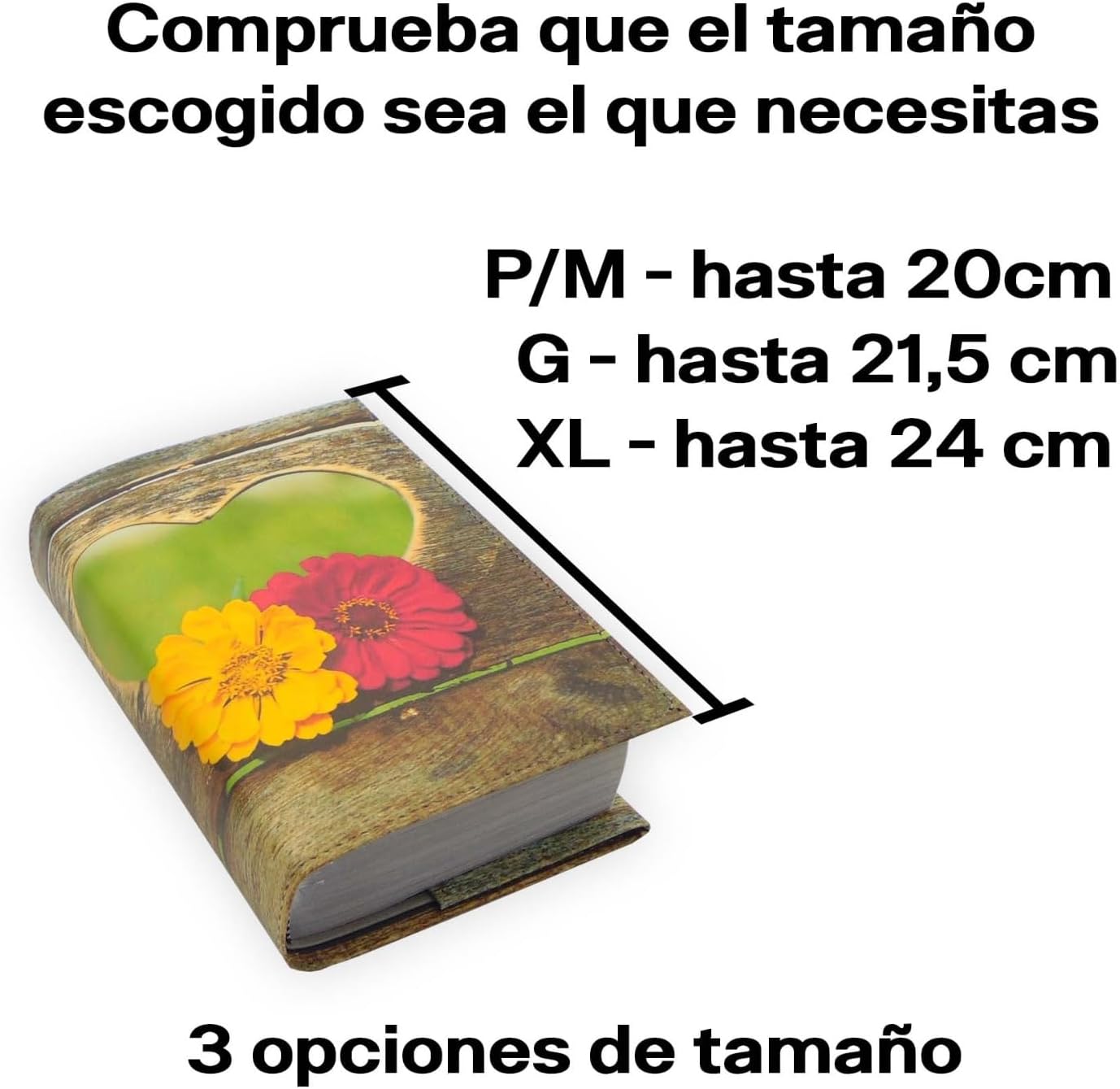 Custodia regolabile - Misura il tuo libro per sapere di che taglia hai bisogno- Adattabile a qualsiasi spessore di libri - 3 diverse dimensioni. _ MEDIA: 20 x 35 cm max. (libro aperto _ grande: 21,5 x 36 cm max. (libro aperto) _XL: 24 x 38 cm max. (libro aperto) - Verifica che la dimensione scelta sia quella di cui hai bisogno Impermeabile, ultra sottile, adatto per coperture morbide o rigide, grande protezione. Proteggi i tuoi libri di studio o il tuo libro di lettura mentre lo porti nello zaino o nella borsa o mentre leggi in spiaggia, in piazza o nei mezzi pubblici. Stampe protette da pellicola termica, non scolorisce - Interno in microfibra Materiali certificati CE - articolo vegano - Prodotto in Spagna