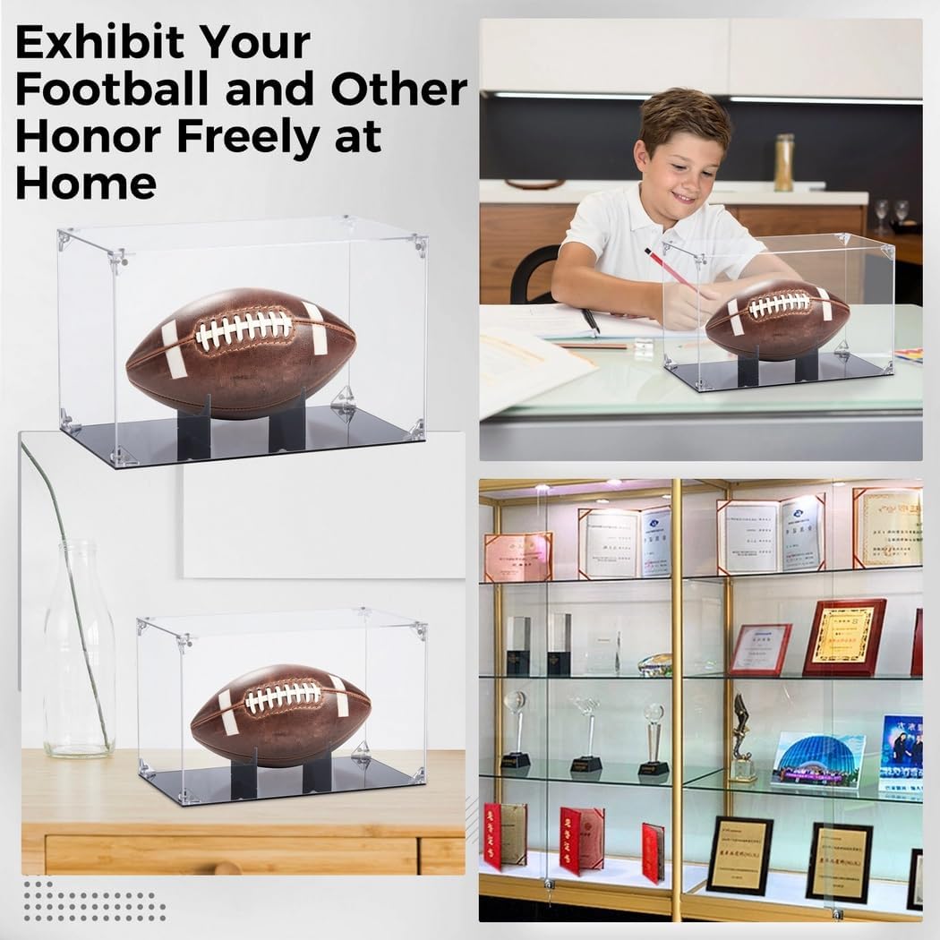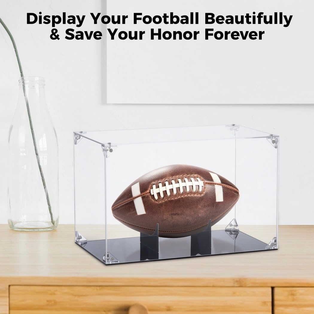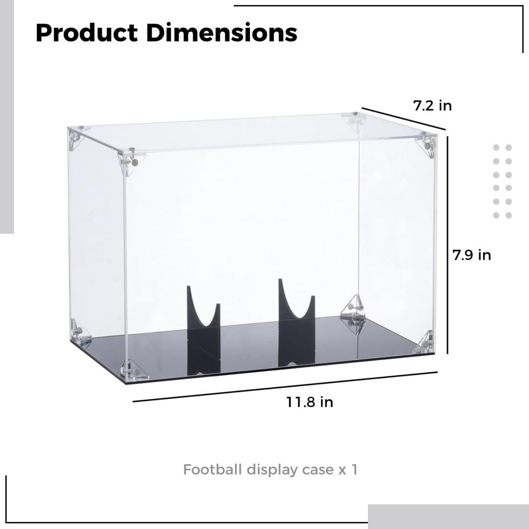 Vetrina trasparente simile al cristallo: mostra i tuoi oggetti da calcio utilizzando la nostra vetrina trasparente per calcio; offre una visione nitida del tuo prezioso calcio da tutti i lati; è un ottimo modo per mostrare quanto ami il calcio Grande decorazione: mostra il tuo amato calcio in questa vetrina sulla scrivania; questo renderà la tua stanza più bella; amici e familiari adoreranno guardarlo Montaggio senza sforzo: è possibile installarlo facilmente; collegare le tavole trasparenti utilizzando le clip che ti offriamo; anche mettere la base sul calcio è semplice; puoi farlo da solo Stabilità e design robusti: la base da calcio offre una grande stabilità, tiene saldamente il calcio; la robusta struttura regge bene, assicurando che la custodia duri anche quando urtata Materiale acrilico avanzato: realizzato in acrilico scelto, la nostra scatola di visualizzazione trova un equilibrio tra costruzione solida e design leggero; la sua forza contro colpi e usura assicura che il calcio sia sicuro; il anche è piacevole al tatto