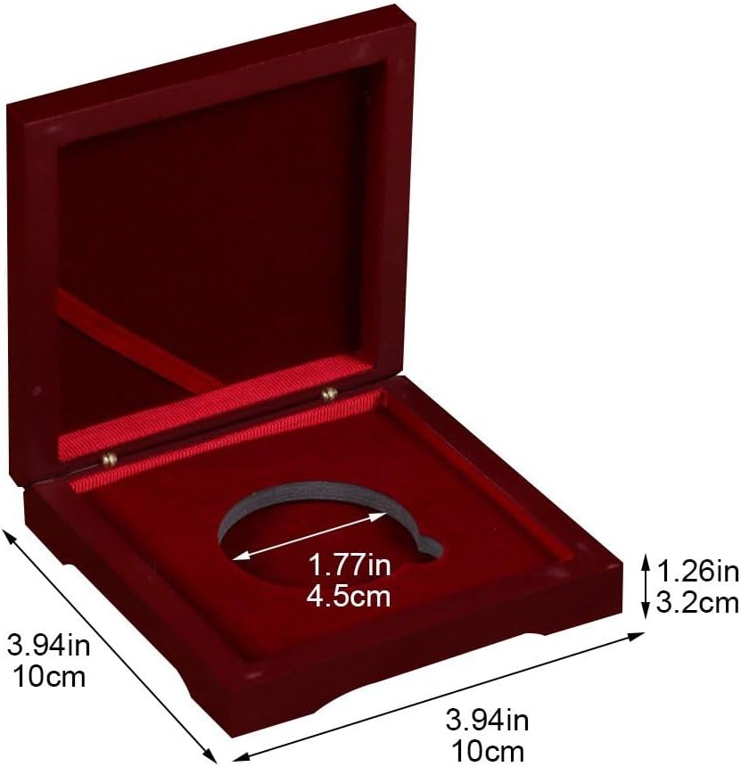 【Portatile e leggero】 Portamonete dimensioni 10 cm x 10 cm, leggero, facile da trasportare e riporre. Il diametro del foro nella scatola è di 45 mm. 【Display】: la scatola per la raccolta di monete commemorative è perfetta per esporre oggetti da collezione, braccialetti, orecchini e altre opere d'arte. 【Materiale durevole】 La vetrina per monete è realizzata in materiale di legno di alta qualità, robusto e dotato di un interno imbottito per proteggere le monete da urti o danni. 【Scatola di raccolta】: una scatola per collezionare monete, souvenir, badge e monete sfida. Può essere posizionato in soggiorno, in soggiorno o in vetrina. 【Regalo】: la confezione per la presentazione delle medaglie è la confezione regalo perfetta per famiglie, bambini e collezionisti.