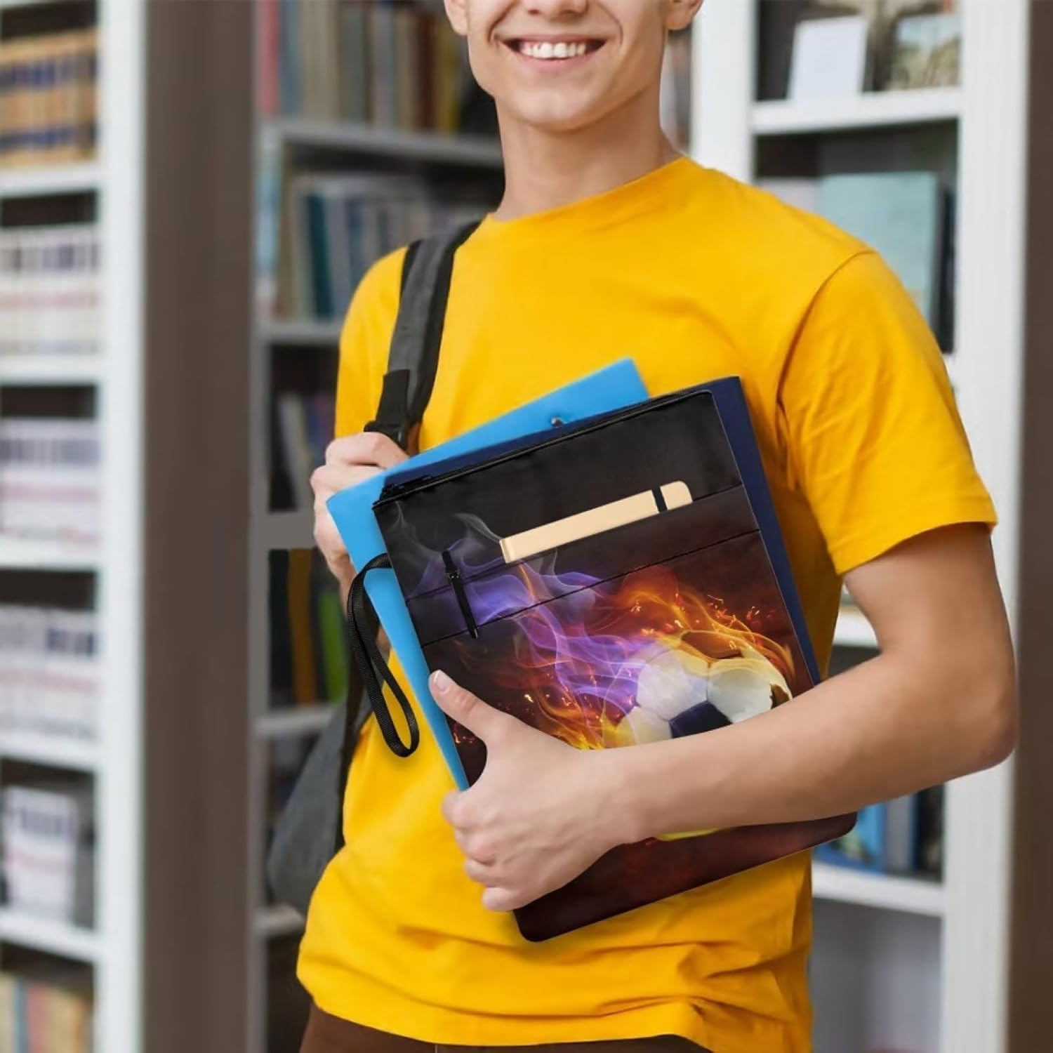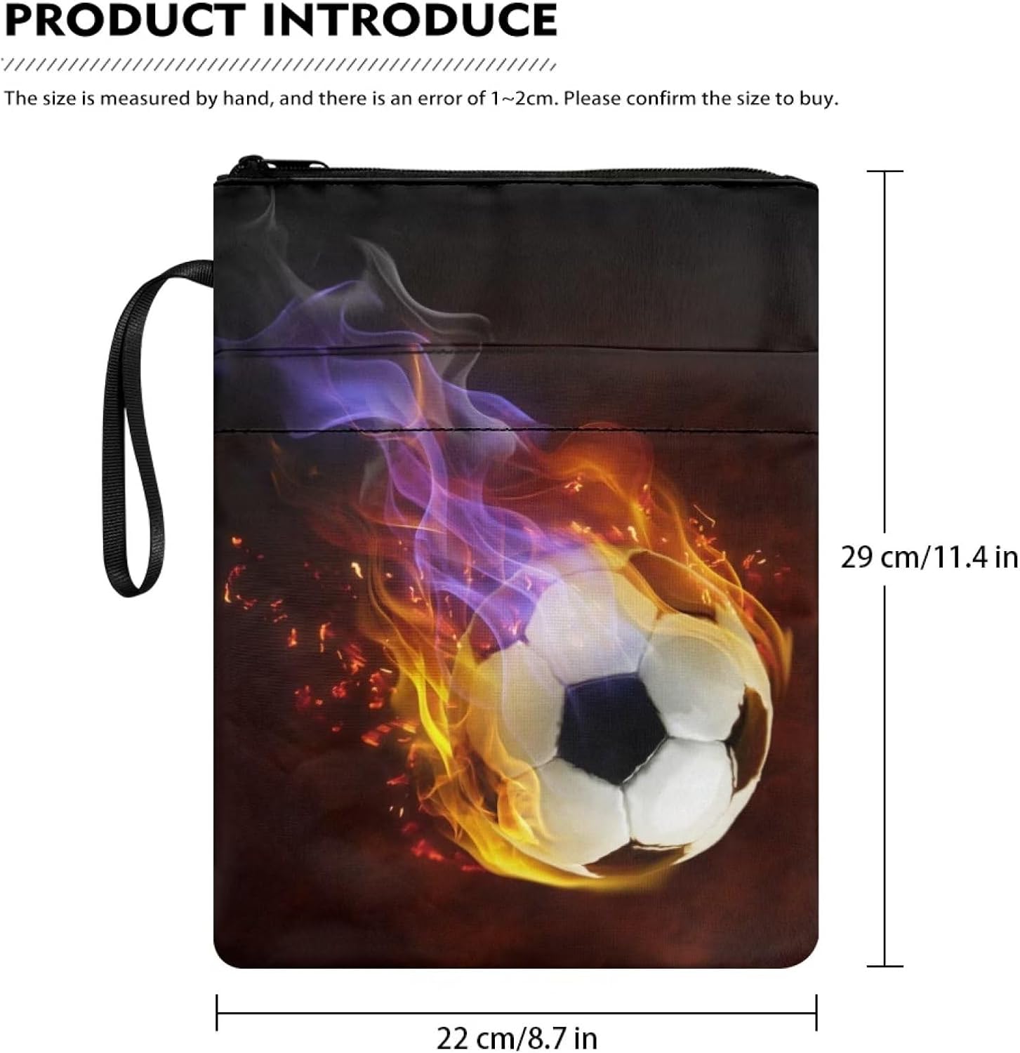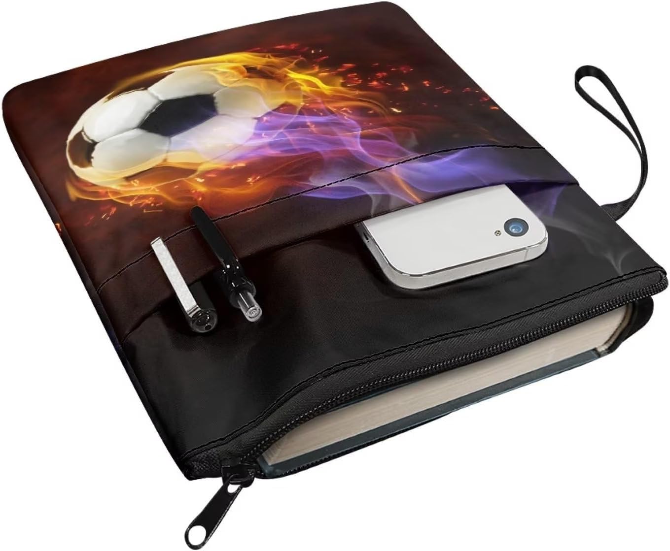 Custodia protettiva per libri a tema calcio antincendio per gli amanti dei libri, 29 x 22,1 cm, con cerniera, copertina rigida per quaderni, per adolescenti, adulti, studenti