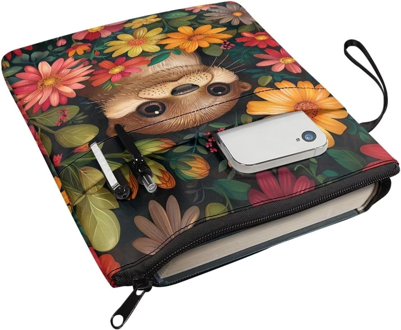 Custodia protettiva per libri con stampa bradipo con cerniera per lettori, regalo per gli amanti dei libri, 29 x 21 cm, lavabile, per bambini, adulti e ragazzi