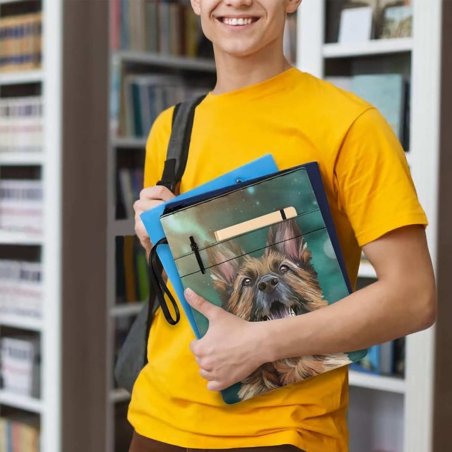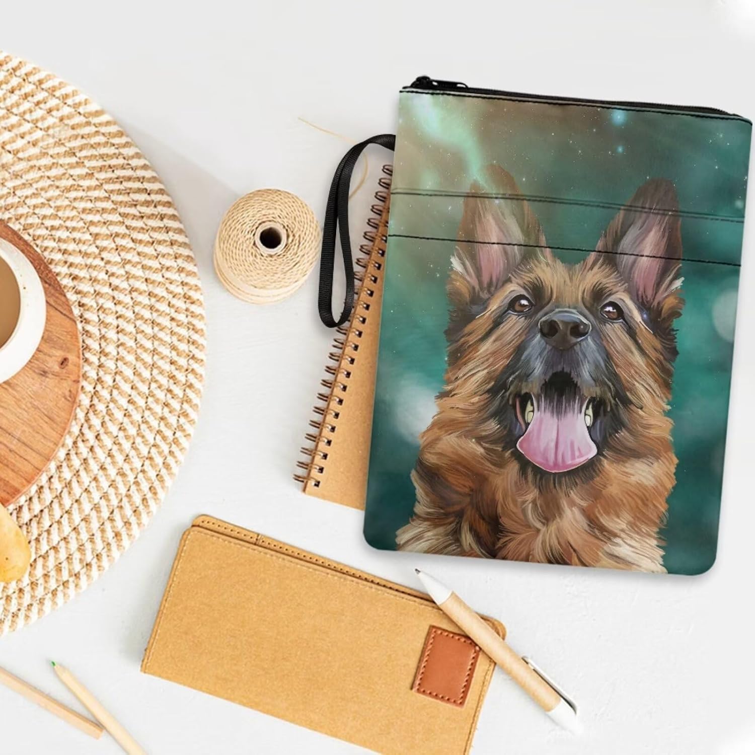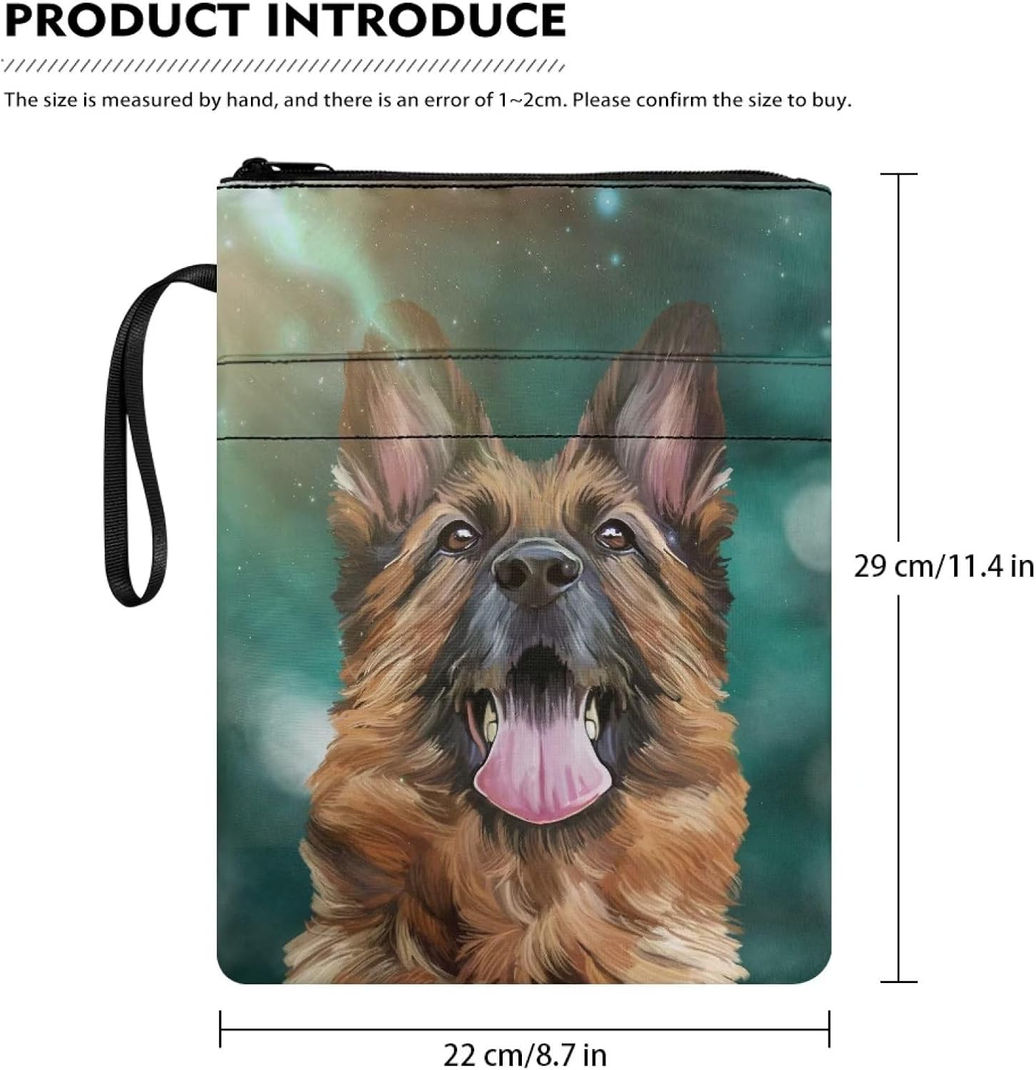 Custodia protettiva per libri con stampa di pastore tedesco, con cerniera, lavabile, per gli amanti dei libri, copertina rigida per quaderni, diari biblici, libri di testo