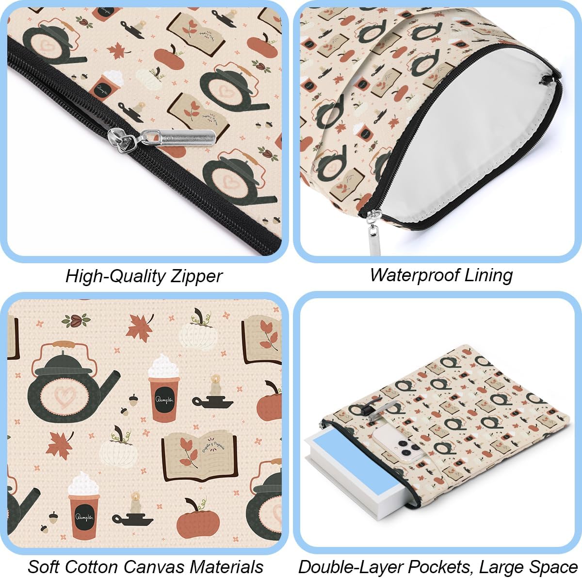 La nostra custodia per libri con cerniera è realizzata in tessuto impermeabile, ha una robusta cerniera nera e una tasca frontale, dimensioni adatte per proteggere libri standard e altri prodotti. È un buon regalo per gli amanti dei libri, custodia per il trasporto di libri per accessori per libri, fornitori di studio.