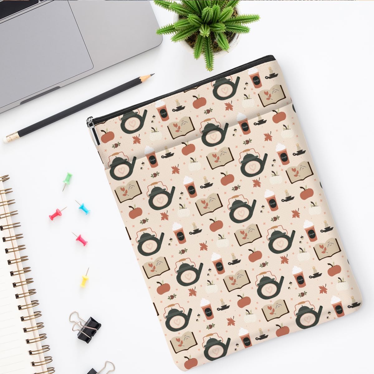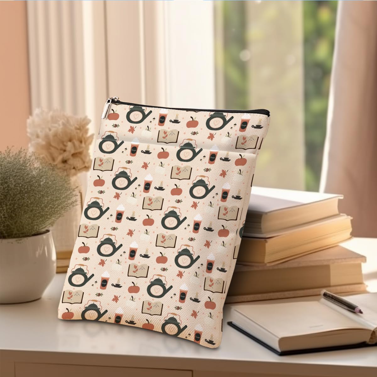 Custodia protettiva per libri, per amanti dei libri, idea regalo per gli amanti dei libri, con cerniera, per copertina rigida, lavabile, con stampa di caffè, sacchetto regalo per donne, ragazze, capo,