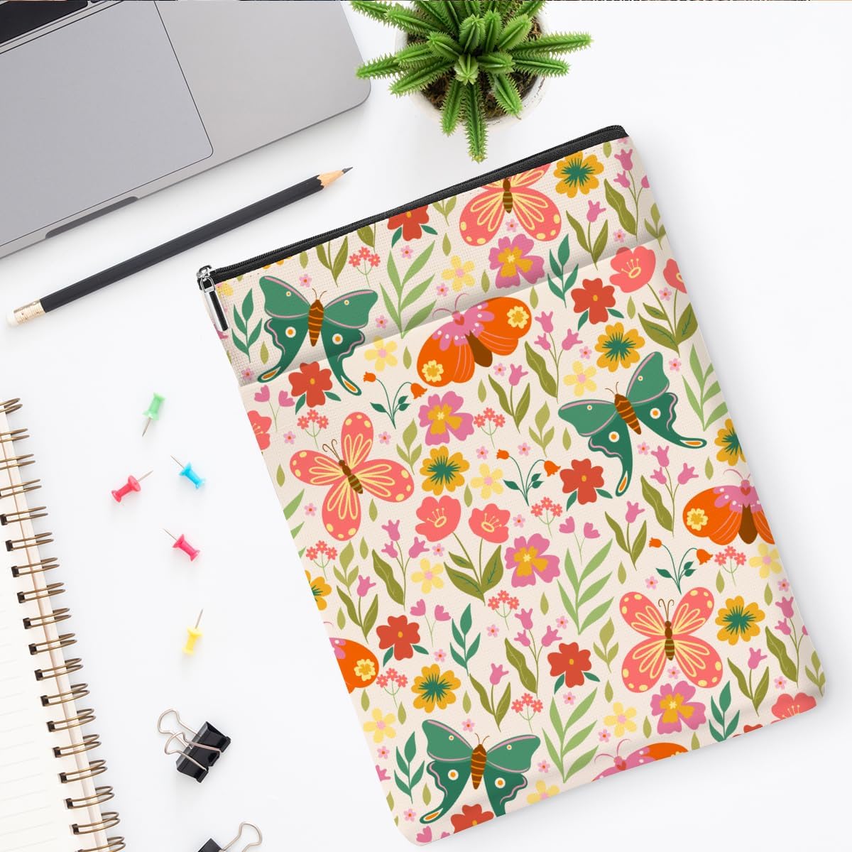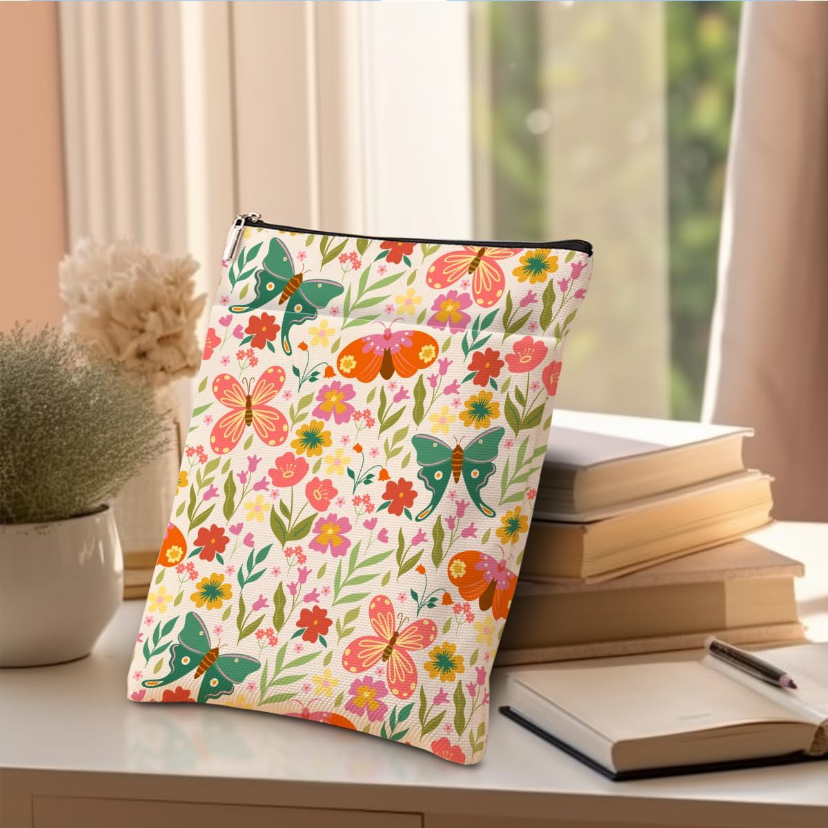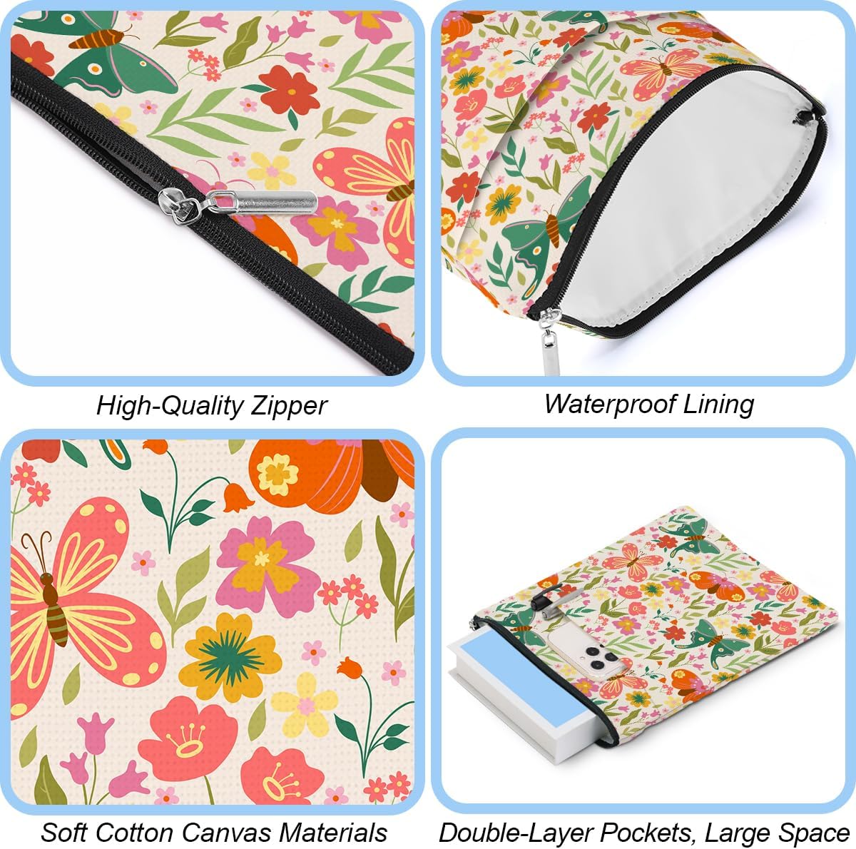 Custodia protettiva per libri, per amanti dei libri, idea regalo per gli amanti dei libri, con cerniera, per copertina rigida, lavabile, con stampa floreale, con farfalla, sacchetto regalo per donne,