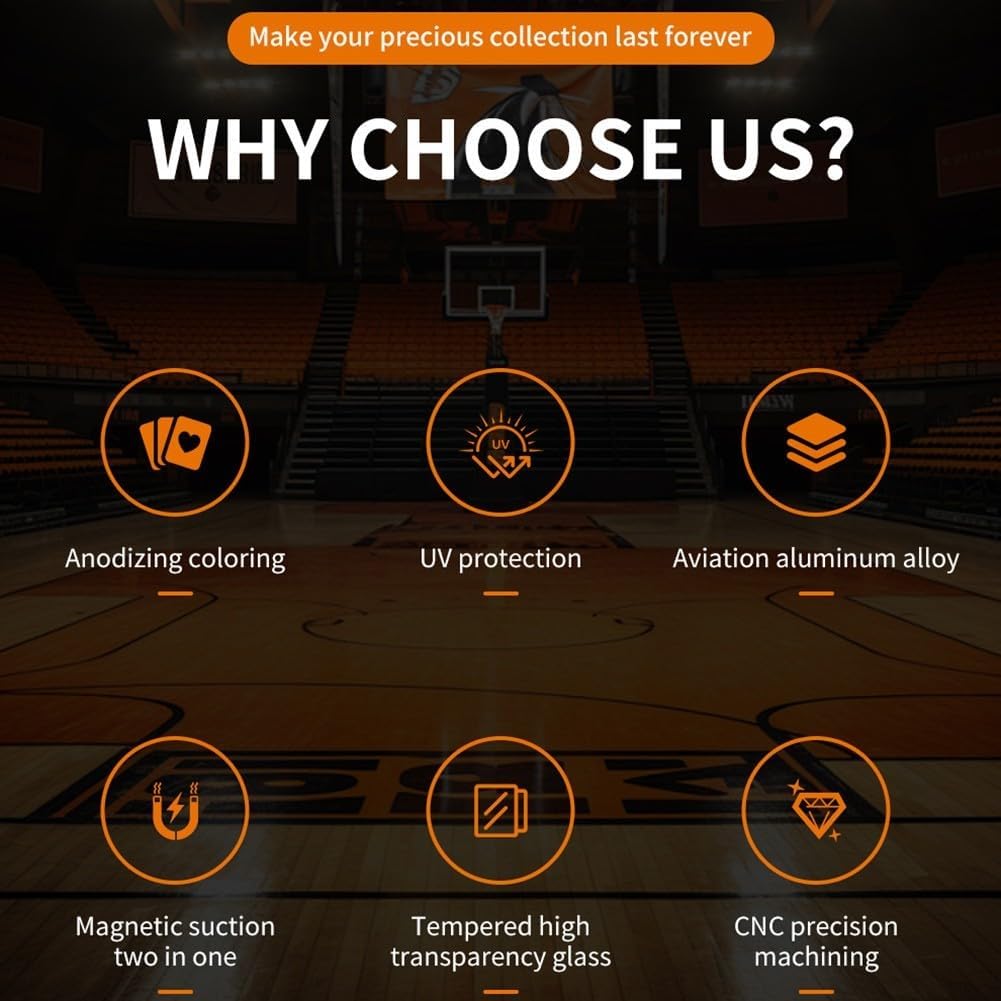 Archiviazione protettiva per scheda di valutazione PSA: progettata per oggetti da collezione classificati PSA, questa custodia protettiva per carte sportive protegge le carte preziose da graffi e usura consentendo allo stesso tempo una visualizzazione chiara, rendendola perfetta per i collezionisti che desiderano una conservazione sicura ma elegante. Struttura in metallo e vetro: realizzata in lega di alluminio combinata con vetro temperato, la custodia offre una protezione di lunga durata e una finitura elegante, mantenendo le carte al sicuro da urti accidentali e aggiungendo un tocco raffinato alla tua collezione. Compatta ma spaziosa: misura 14,2 x 8 x 1 cm, questa custodia è compatta per un facile trasporto e conservazione, ma con dimensioni precise per contenere saldamente le carte standard senza ingombro, rendendola comoda da trasportare a spettacoli o da esporre a casa. Molteplici scelte di colore: disponibile in nero, argento, rosso, verde e blu, che consente di abbinare il tema della tua collezione o esprimere lo stile personale, trasformando lo spazio di archiviazione in una parte attraente della configurazione di visualizzazione delle tue schede. Elegante design vetrina: la parte anteriore in vetro temperato trasparente consente di apprezzare i dettagli della carta senza rimuoverlo, mentre la cornice in alluminio aggiunge un fascino moderno, perfetto per esporre carte preziose mantenendole protette.