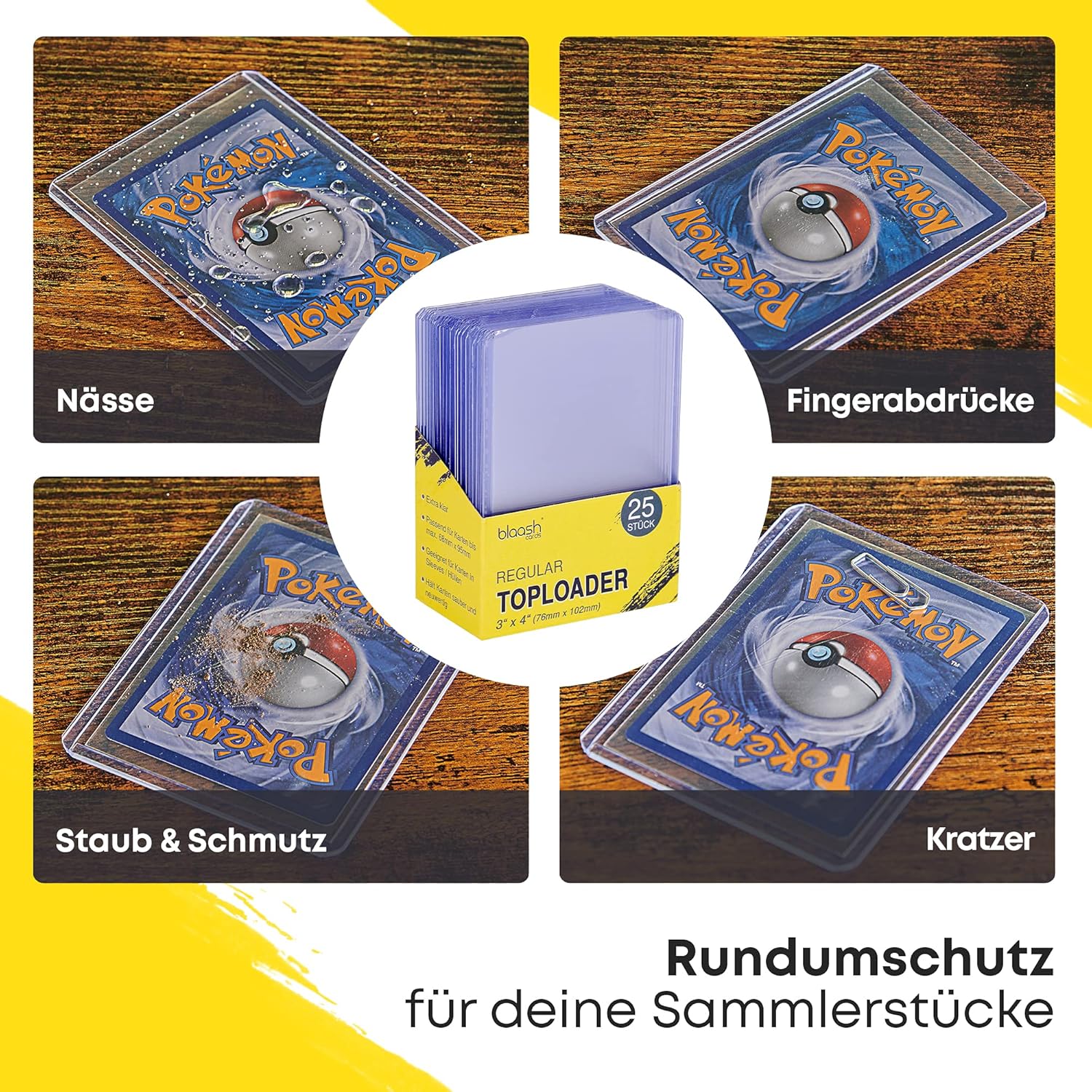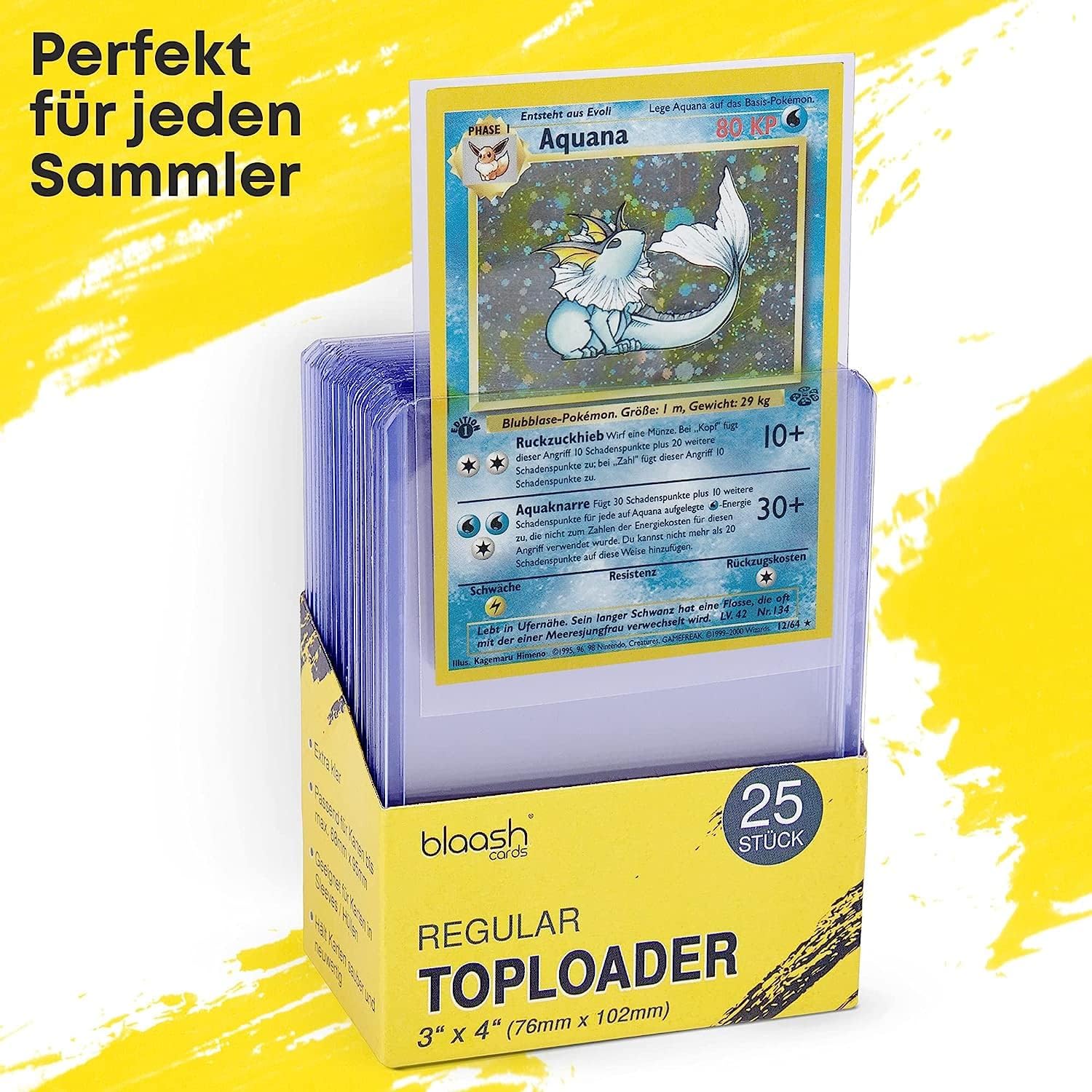 ⭐ Utilizzo versatile: 8 x 25 toploader per tutte le comuni carte collezionabili e buste protettive fino a 68 mm x 95 mm come Pokémon, Magic The Gathering, YuGiOh, Fortnite o carte sportive. ⭐Protezione completa: che si tratti di polvere e sporco, graffi e crepe, umidità o angoli piegati, i robusti Toploader proteggono le tue carte da gioco e da collezione dall'usura e dalla perdita di valore. ⭐ Ultra chiaro: la parte anteriore e posteriore trasparenti garantiscono una rappresentazione chiara senza restrizioni ottiche. Anche trasparente in combinazione con tutte le comuni custodie Penny o Soft. ⭐Sicurezza e protezione: le dimensioni del caricatore superiore di 76 mm x 102 mm e lo spessore di 35 punti offrono la massima stabilità e sono ideali per trasporti e spedizioni sicuri. ⭐UNSER blaash VERSPRECHEN; Wenn dir aus welchem Grund auch immer das Set Schutzhüllen nicht gerecht werden, bekommst du innerhalb von 60 Tagen ganz problemlos dein Geld zurückerstattet.