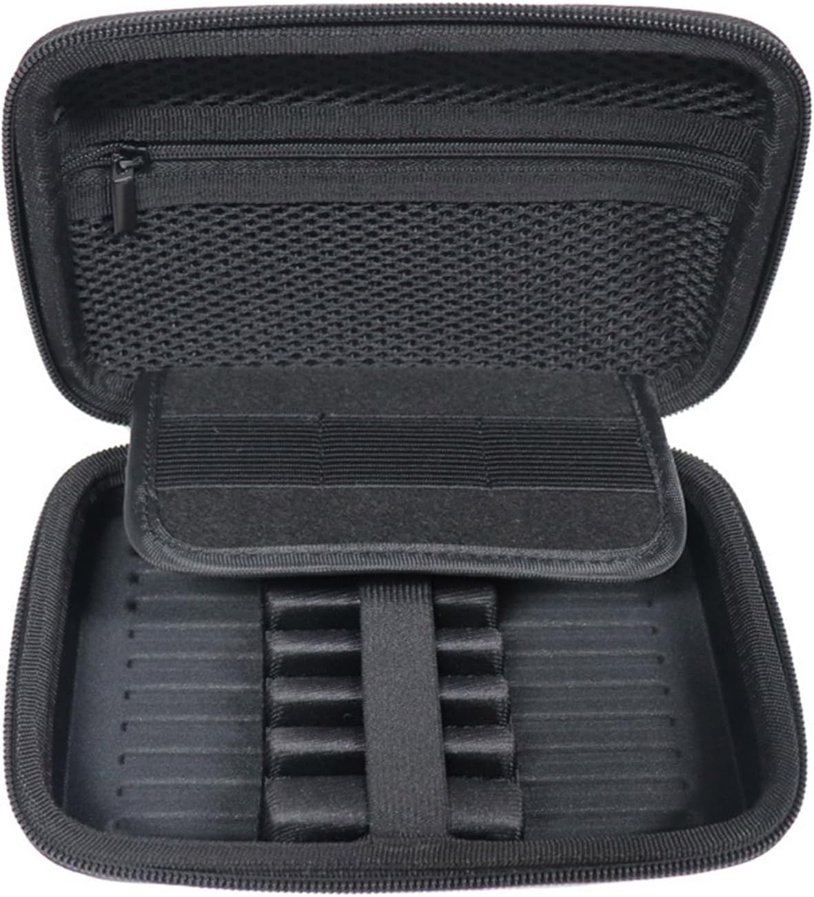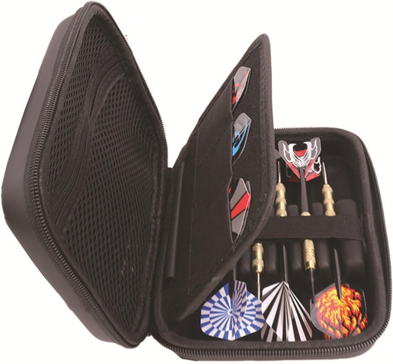 Realizzato in PU e base interna forniscono una doppia protezione contro i danni, rendendolo per viaggi o stoccaggio Viene fornito con una cintura per una facile portabilità, mentre i divisori con tasca a rete rendono facile trovare ciò di cui hai bisogno Progettato per adattarsi a punta in acciaio, punta morbida, freccette e freccette professionali della maggior parte delle freccette La base e l'alta fascia elastica mantengono le freccette stabili e sicure, mentre le dimensioni compatte e il manico robusto lo rendono facile da trasportare Con spazio per 6 freccette, alberi, aletta, punta e altri accessori