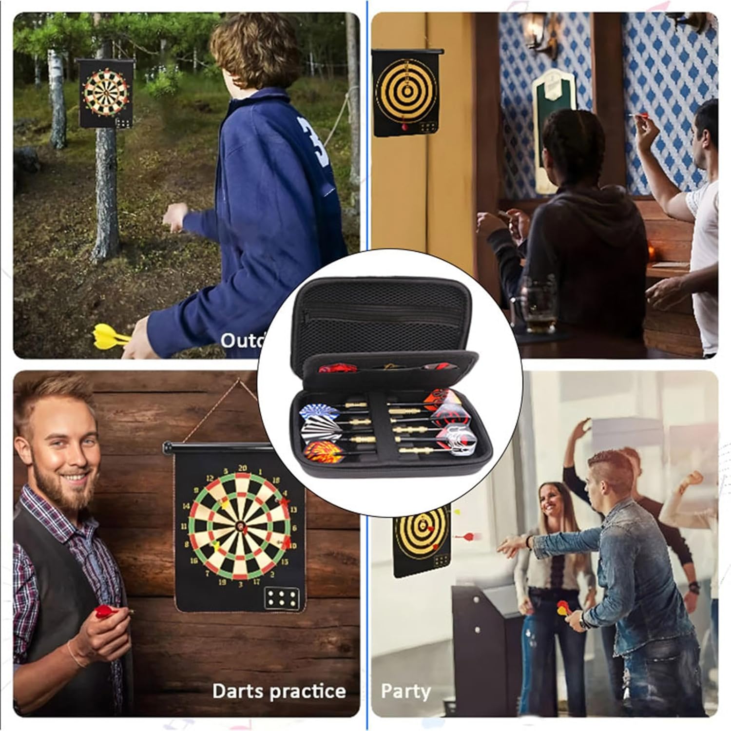 Viene fornito con una cintura per una facile portabilità, mentre i divisori con tasca a rete rendono facile trovare ciò di cui hai bisogno Con spazio per 6 freccette, alberi, aletta, punta e altri accessori Progettato per adattarsi a punta in acciaio, punta morbida, freccette e freccette professionali della maggior parte delle freccette La base e l'alta fascia elastica mantengono le freccette stabili e sicure, mentre le dimensioni compatte e il manico robusto lo rendono facile da trasportare Realizzato in PU e base interna forniscono una doppia protezione contro i danni, rendendolo per viaggi o stoccaggio