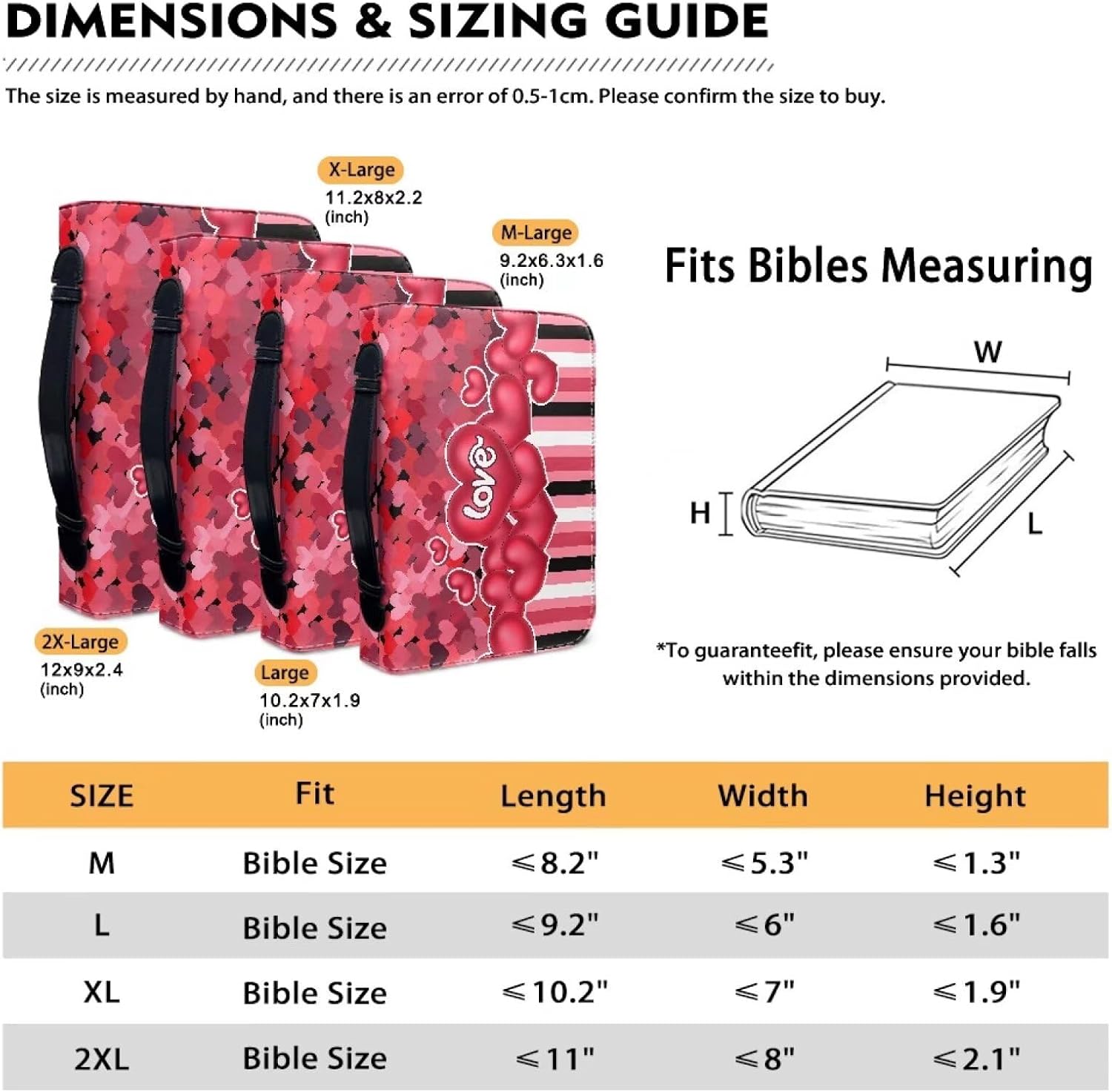 Materiale di alta qualità: è realizzato in pelle PU e robusta cerniera in metallo, facile da trasportare e pulire. Questo elegante supporto della Bibbia a motivi geometrici può sempre proteggere la tua Bibbia o i tuoi libri preferiti. La maniglia rinforzata è facile da impugnare e trasportare, puoi portarla con te in qualsiasi momento per andare in chiesa, biblioteca, studio per lo studio della Bibbia, il culto o il pellegrinaggio, ecc. Dimensione ideale: abbiamo 4 misure tra cui scegliere: M: 23,9 cm L x 16,3 cm L x 4,1 cm H; L: 26,7 cm L x 17,8 cm L x 4,8 cm H; XL: 29,2 cm L x 22,9 cm L x 6,1 cm H. All'interno la custodia della Bibbia ha 2 tasche laterali, 1 verticale tasca, 1 segnalibro en. t, 4 fessure per penne e 1 cintura segnalibro. Per garantire la migliore vestibilità, misurare accuratamente la Bibbia e confrontarla con la nostra tabella delle taglie. Assicurati di lasciare spazio extra per evitare una vestibilità troppo stretta. Trova la misura perfetta per le tue Bibbie. Organizer multiuso: questa borsa per bibbia può essere utilizzata come borsetta, zaino portatile, borsa per trucchi, custodia per tablet, borsa per studio biblico, astuccio per cancelleria, borsa per documenti, valigetta, accessorio per giornali, borsa per libri/custodia e altro ancora. Una tasca aggiuntiva può essere utilizzata per contenere evidenziatori della Bibbia, penne, diari di preghiera, annunci di chiesa, note di preaching, biglietti di preghiera, appunti o segnalibri. Diversi motivi: ci sono diversi modelli tra cui scegliere, come motivo floreale, cervo, mucca, leopardo, girasole. Offriamo anche un servizio di personalizzazione, puoi personalizzare i tuoi modelli preferiti come regalo di compleanno o vacanza. Regalo ideale: questa borsa della Bibbia è un regalo meraviglioso per i tuoi amici, familiari, pastori, professionisti, viaggiatori, insegnanti e te stesso per il Ringraziamento, Pasqua, Natale, Capodanno e qualsiasi altro festival speciale.