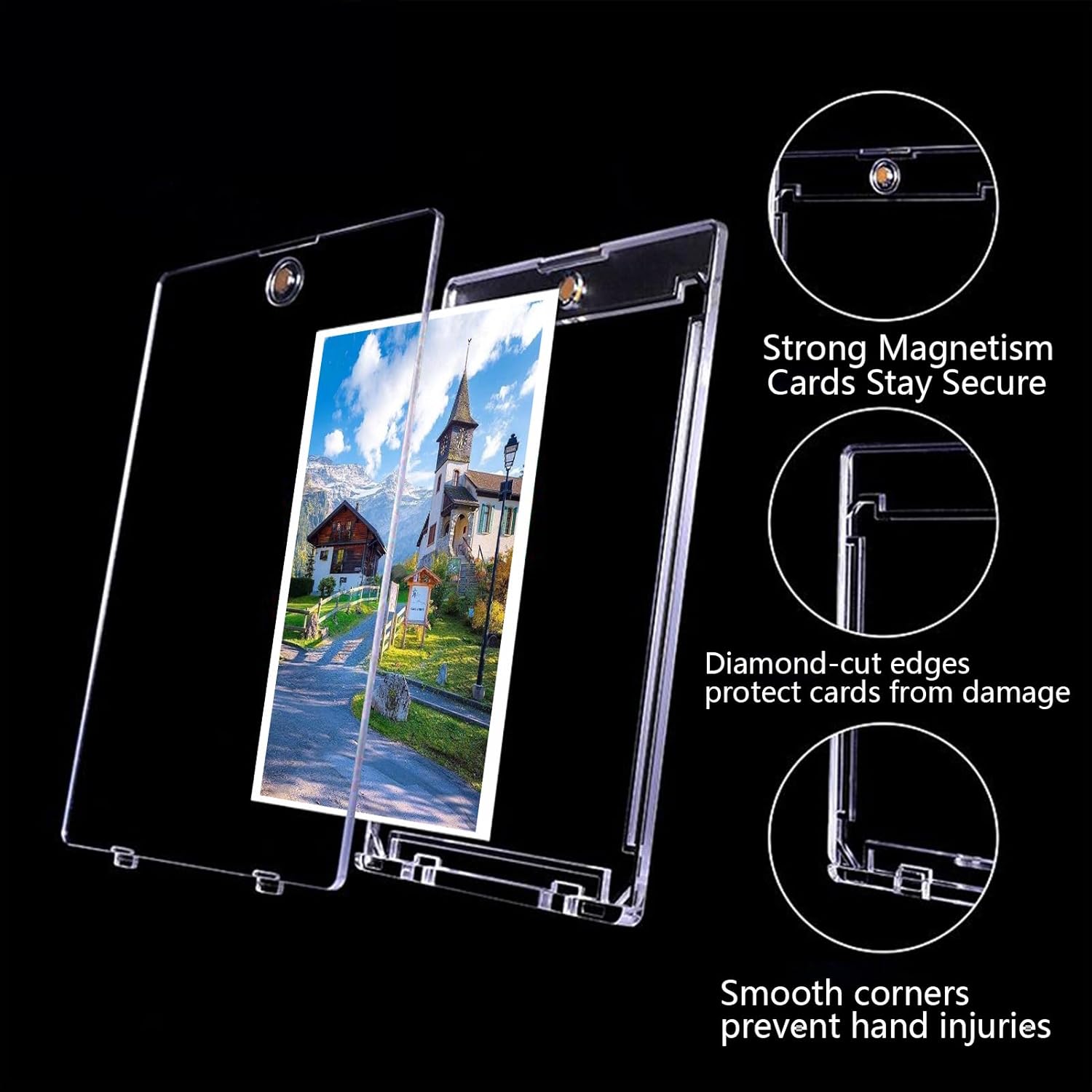 Design magnetico di sicurezza: le custodie rigide per carte sono dotate di una custodia con chiusura magnetica per garantire una conservazione sicura delle carte, prevenire cadute accidentali e fornire un facile accesso proteggendo contro i danni per un uso quotidiano affidabile Protezione del colore a lunga durata: protegge le carte dai raggi UV utilizzando acrilico resistente allo sbiadimento, offrendo una protezione a lungo termine contro l'ossidazione mantenendo colori vivaci nei display di archiviazione Difesa completa: offrono una difesa completa, queste custodie proteggono le carte da collezione da polvere, esposizione a liquidi, graffi e piegature, offrendo tranquillità per esigenze di archiviazione a lungo termine in modo efficace Soluzione di raccolta avanzata: con tecnologia no-unseal e trasparenza totale, le maniche consentono la visualizzazione su entrambi i lati, riducendo l'usura per offrire un processo di raccolta raffinato e migliorato Molteplici occasioni: progettate con principi di vestibilità universale, queste custodie garantiscono la compatibilità con carte di dimensioni standard, offrendo spazio senza soluzione di continuità per più schede in un'unica soluzione pratica