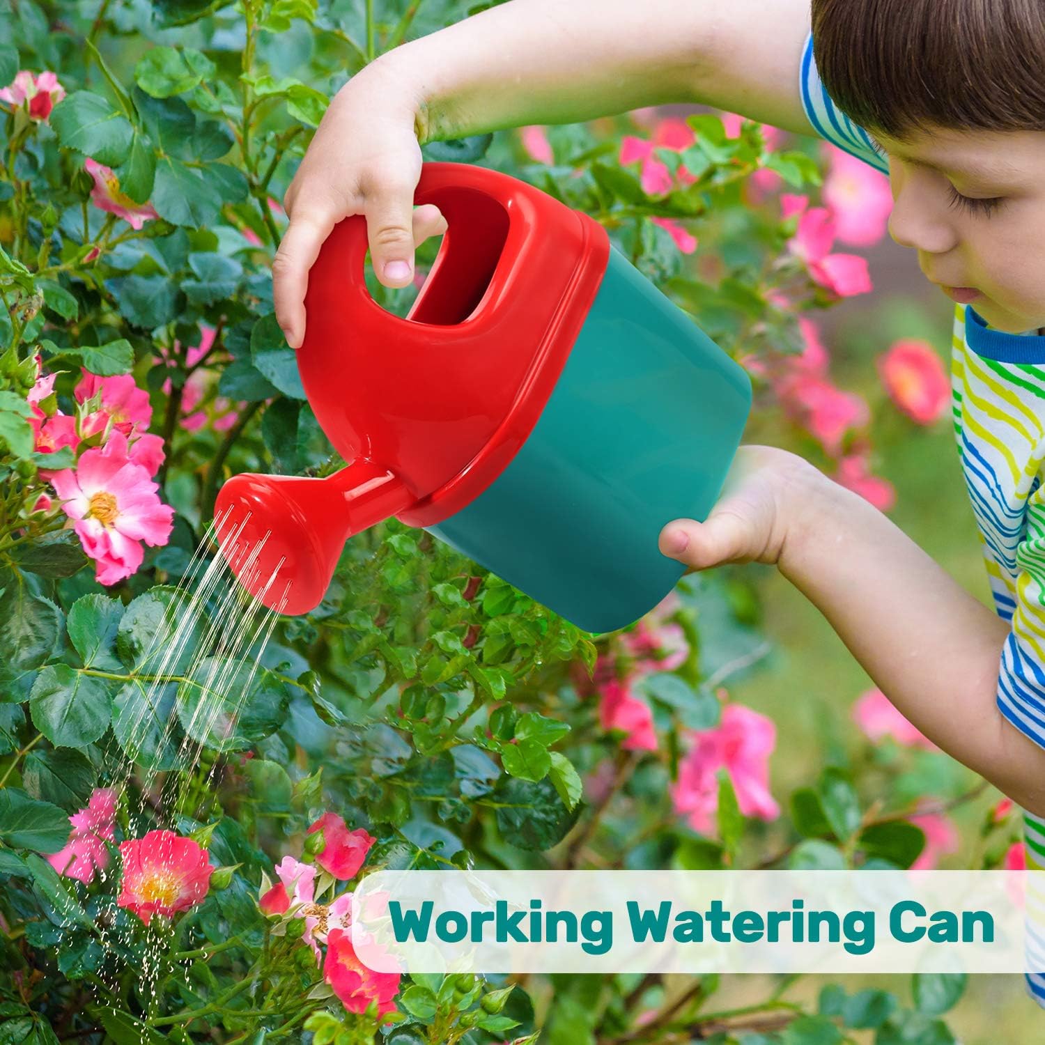Set di attrezzi da giardinaggio per bambini: questo set comprende una carriola a misura di bambino, un annaffiatoio, guanti, rastrello a mano, pala, doppia zappa, coltivatore, tagliasiepi e grembiule lavabile. La dimensione di questi attrezzi da giardino è perfetta per i tuoi piccoli. Diversi strumenti aiuteranno tuo figlio a diventare un giardiniere migliore e allo stesso tempo sarà divertente aiutarlo fuori e lontano dai videogiochi. Carriola divertente: la nostra carriola non è solo funzionale ma anche divertente da usare. Le maniglie sono perfette per le mani dei più piccoli, facilitano la spinta e incoraggiano i bambini ad aiutare nelle attività di giardinaggio. I bambini possono anche riporre gli attrezzi da giardinaggio nella carriola dopo le attività all'aperto. Dimensioni del prodotto (L x P x A): 26,5 x 9,7 x 14 pollici, consigliato dai 3 anni in su. Uso interno ed esterno: i bambini piccoli possono utilizzare questi strumenti all'aperto per giocare con terra, sabbia o piccole pietre. Il set è ideale anche per giochi di ruolo in interni, promuovendo l'interazione fisica tra amici e familiari e sviluppando la piccola immaginazione. Materiale sicuro e robusto: realizzati in polipropilene durevole e di alta qualità, questi strumenti hanno bordi lisci e sono sicuri per i bambini. I guanti da giardinaggio e il grembiule aiutano anche a prevenire infortuni alle mani durante il giardinaggio, proprio come un vero giardiniere. OTTIMA IDEA REGALO: questo colorato set di attrezzi da giardinaggio è un regalo divertente per Natale, compleanni o altre occasioni speciali. Sorprendi i tuoi bambini piccoli con un set di attrezzi da giardinaggio che non solo renderà divertente il giardinaggio, ma li aiuterà anche a sviluppare nuove abilità