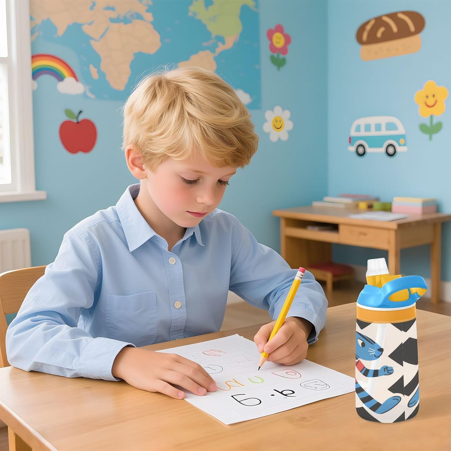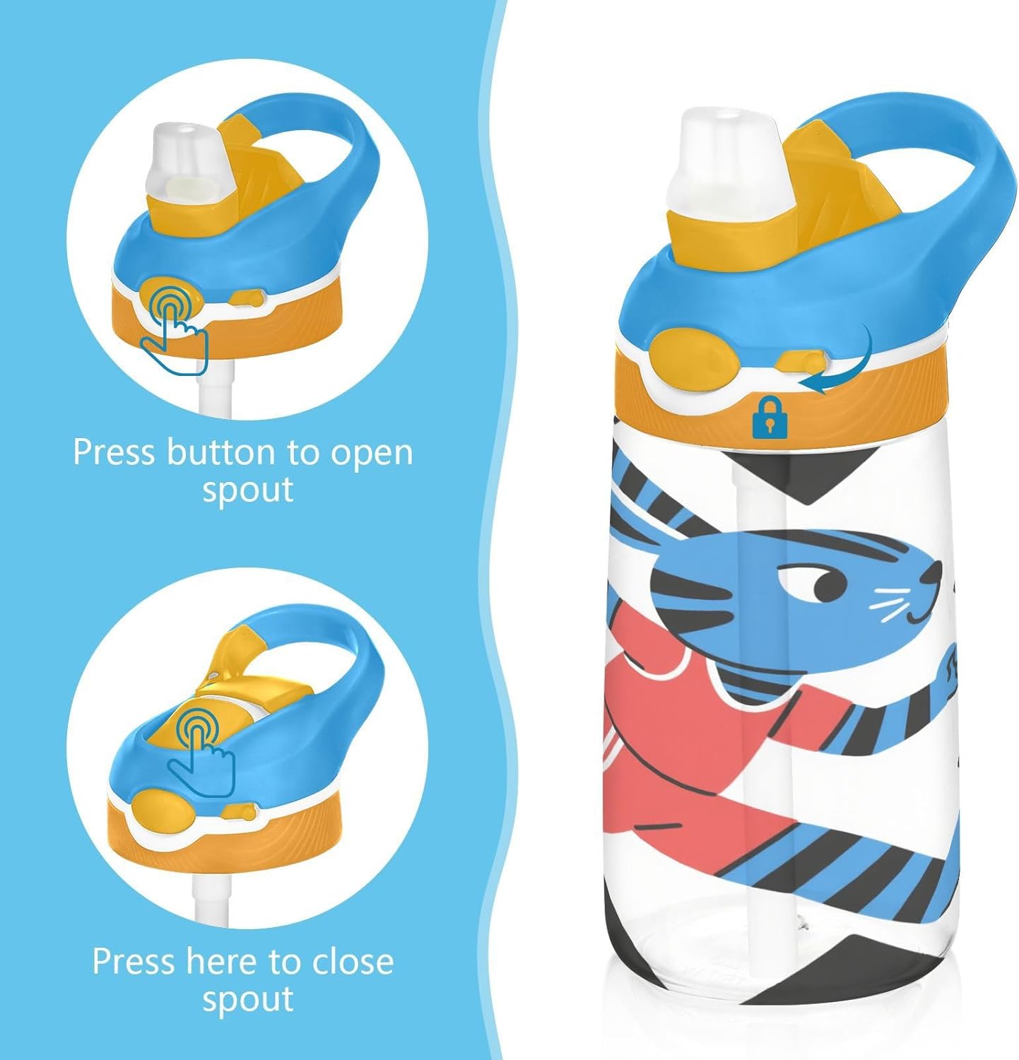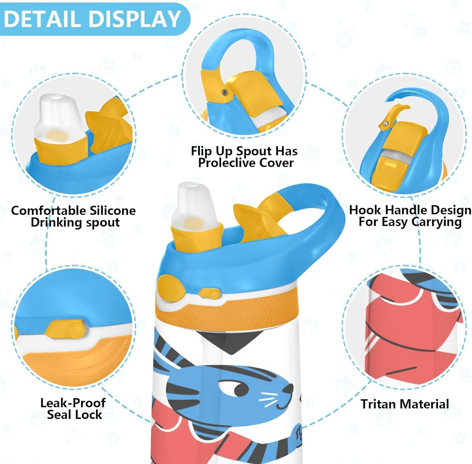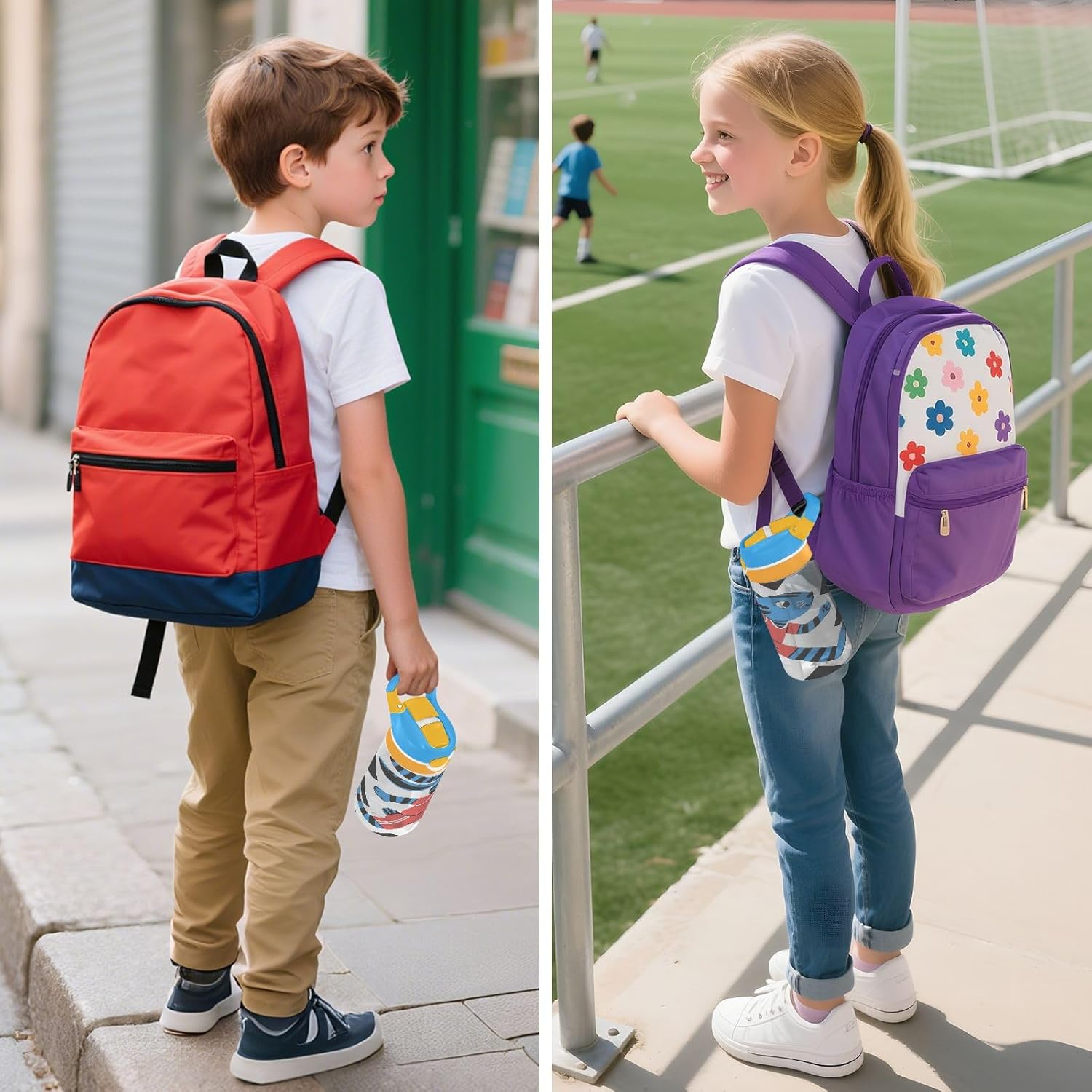Materiale di sicurezza: il corpo in Tritan e il beccuccio in silicone alimentare garantiscono durata e sicurezza. Contiene 480 ml di acqua, perfetto per l'idratazione quotidiana. Non adatto a bambini di età inferiore ai 3 anni Design portatile: l'ampio manico e il gancio per coperchio rendono la borraccia per bambini facile da trasportare. I bambini possono appenderlo alle loro borse, evitando il fastidio di cadere durante la ricreazione o i viaggi in autobus. Funzionamento amichevole: il becco d'anatra si adatta bene, con una copertura antipolvere. L'interruttore a pulsante di Water Bottle Kids consente l'uso con una sola mano, in modo che i bambini possano idratarsi senza mettere giù i loro giocattoli o attrezzi sportivi. Previene le perdite: il blocco a pulsante blocca l'apertura accidentale del becco d'anatra. Mantiene le bevande all'interno, proteggendo zaini e vestiti durante i pendolari o il gioco. Facile da pulire: tutte le parti della borraccia per bambini possono essere smontate per evitare l'accumulo di sporco. Pulire con detergente neutro e acqua calda.