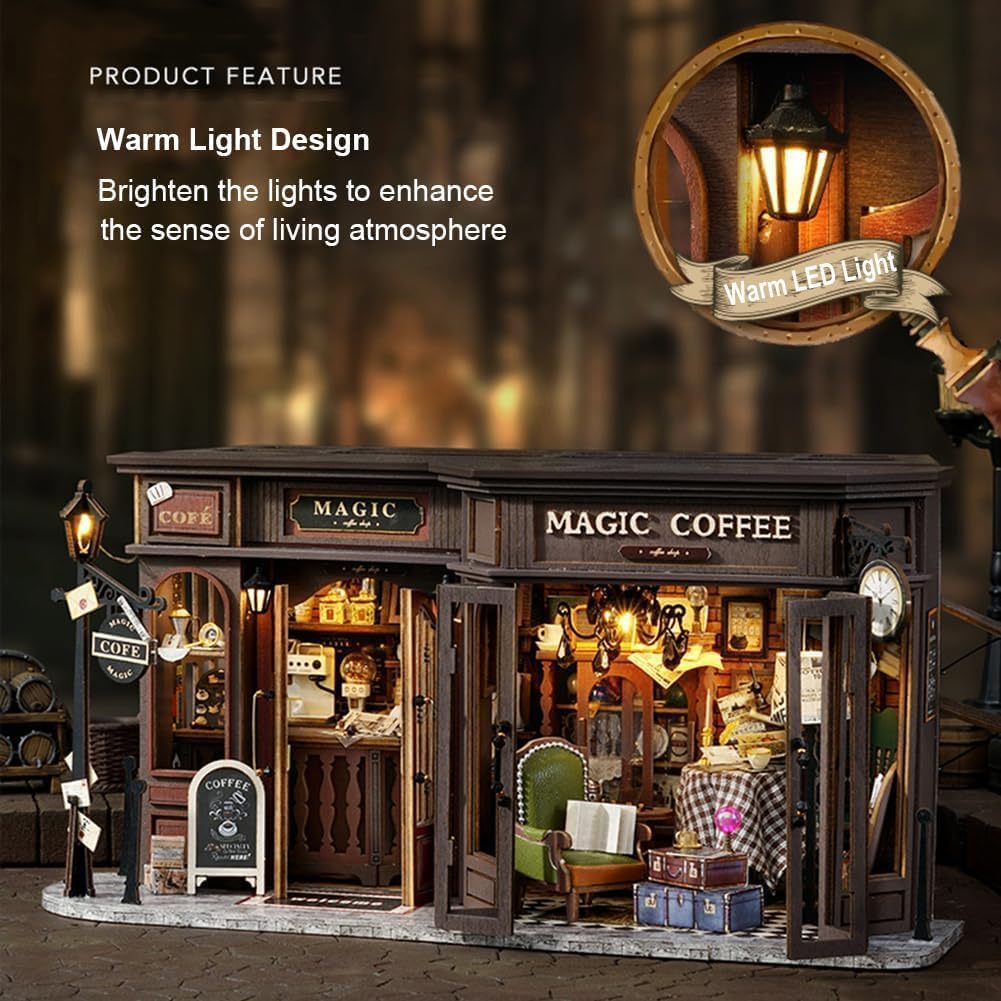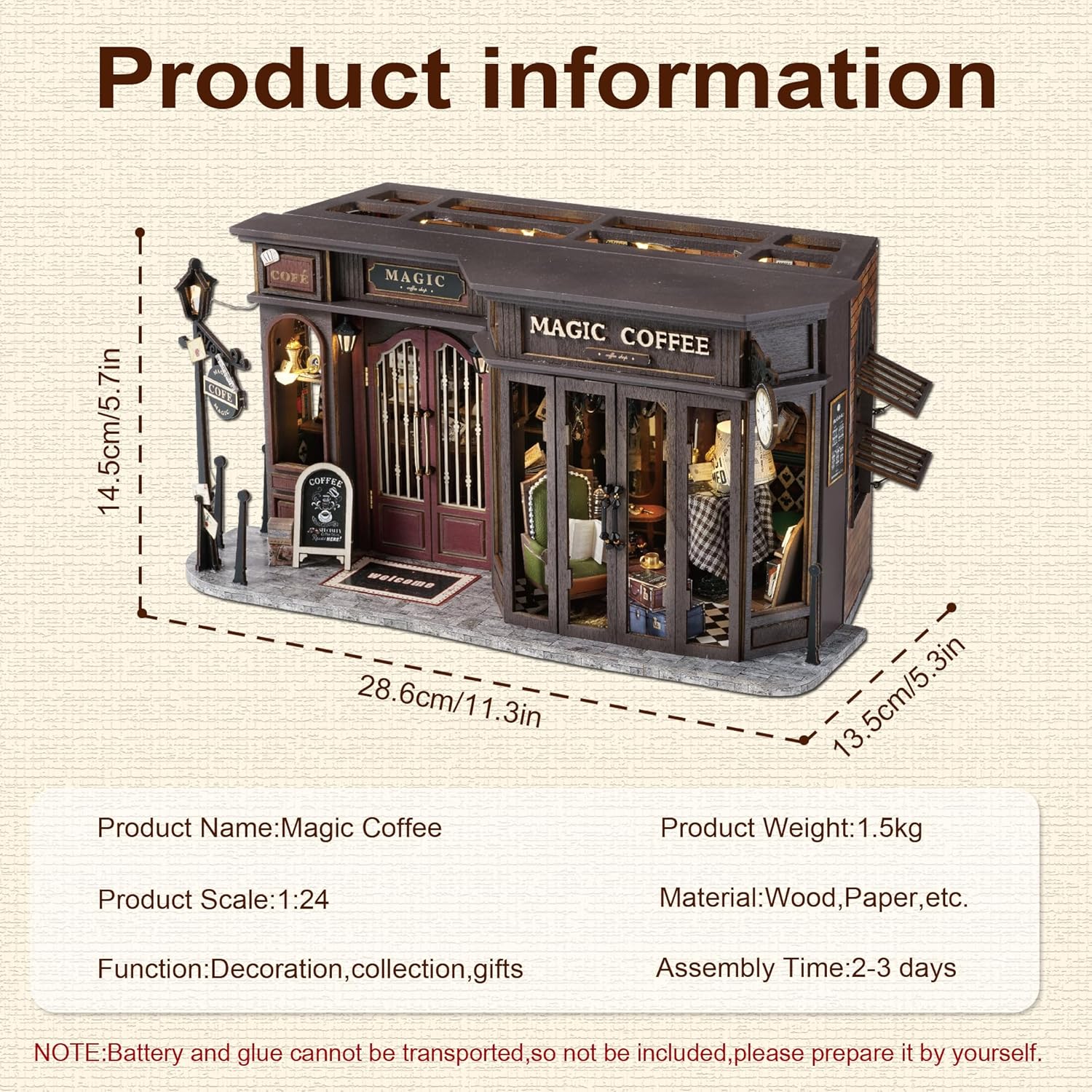 Progetto creativo fai-da-te: costruisci la tua casa delle bambole in miniatura con legno di alta qualità. Perfetto per gli appassionati di modellismo che cercano un'attività fai-da-te rilassante. Incantevole mini caffetteria - Questo modello 3D dettagliato si trasforma in un incantevole caffè - Ideale per decorazioni, collezionisti o come regalo. Facile da montare: con parti pretagliate precise e istruzioni chiare. Nessuna conoscenza preliminare necessaria - Ideale per principianti e utenti avanzati. Regalo perfetto: kit fai-da-te unico per adulti, adolescenti e hobbisti per Natale, compleanni o come attività creativa. Materiali premium: legno ecologico, stabile e durevole. Dimensioni finite: 28,6 x 13,5 x 14,5 cm – Ideale per vetrine o decorazione di scaffali.