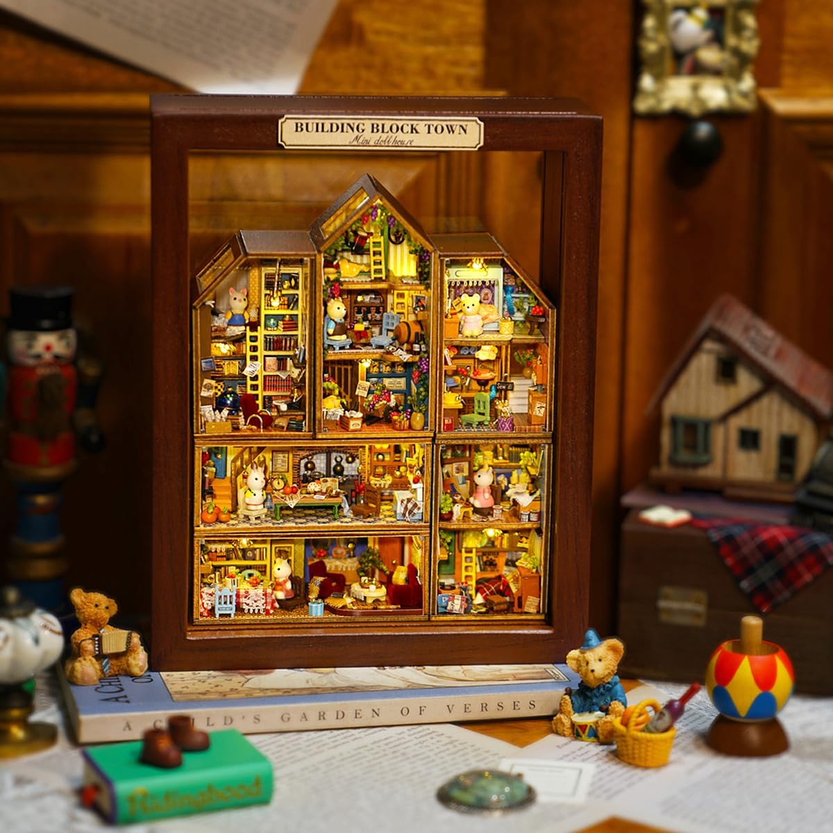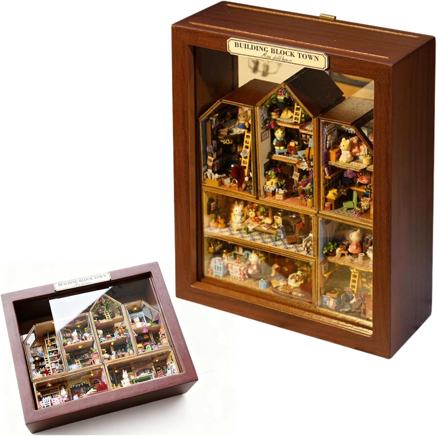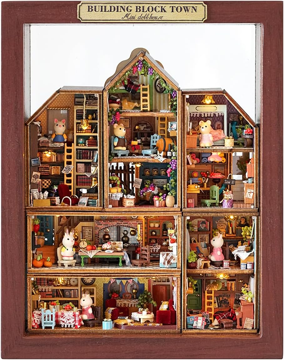 Kit di costruzione in miniatura per casa delle bambole: materiale sicuro di alta qualità, sicuro per far giocare i bambini. I bambini possono progettare la casa insieme ai genitori e favorire così l'interazione tra genitori e figli. Pazienza: segui le istruzioni in inglese e le immagini dettagliate per assemblarlo passo dopo passo. Dai 14 anni. Regali perfetti per bambini, famiglia, amici, fidanzata, ecc. Promuove l'immaginazione e la creatività dei bambini: risveglia l'immaginazione e la creatività, stimola il pensiero aperto e sviluppa pazienza e abilità pratiche. Decorazione meravigliosa: questa casetta è una meravigliosa aggiunta al tuo appartamento e aggiunge un tocco giocoso ed elegante a qualsiasi stanza. Esponilo con orgoglio nella tua libreria, sulla mensola del camino o sul tavolo e fornisci in modo sicuro spunti di conversazione e complimenti ai tuoi ospiti. Il nostro kit contiene luci LED che donano al tuo mondo in miniatura un'atmosfera calda. Danno vita alla scena e la fanno sembrare un'illusione. Combinazione libera: questa casa delle bambole può essere combinata. Puoi combinarlo verticalmente o orizzontalmente come desideri.