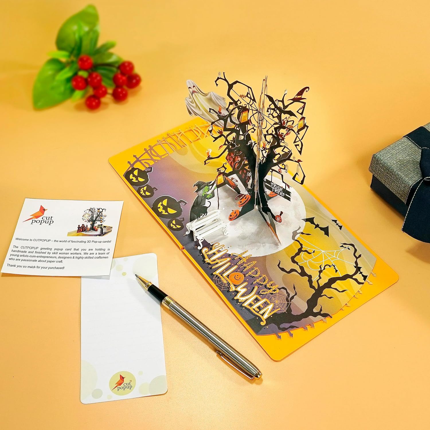 Crea un momento magico per la persona amata con il biglietto pop-up Happy Halloween di Cutpopup. Presenta un simpatico design 3D Happy Halloween che si apre nella tua mano. Perfetto per creare note confortanti per tutte le occasioni. Un biglietto pop-up a sorpresa è uno dei modi perfetti per esprimere i tuoi sentimenti a una persona cara! Assemblati a mano da abili artigiani, i nostri biglietti d'auguri pop-up sono affascinanti, possono sorprendere tutti con il loro livello di dettaglio e sono dotati di stampa ecologica. GARANZIA DI SODDISFAZIONE AL 100% - Siamo sicuri che sarai molto soddisfatto della nostra carta popup 3D di alta qualità. Se per qualsiasi motivo non sei soddisfatto di questo prodotto, richiedi un rimborso. COMPRENDE: Una (1) carta - Dimensioni piegata: 15 x 15 cm e una (1) nota separata