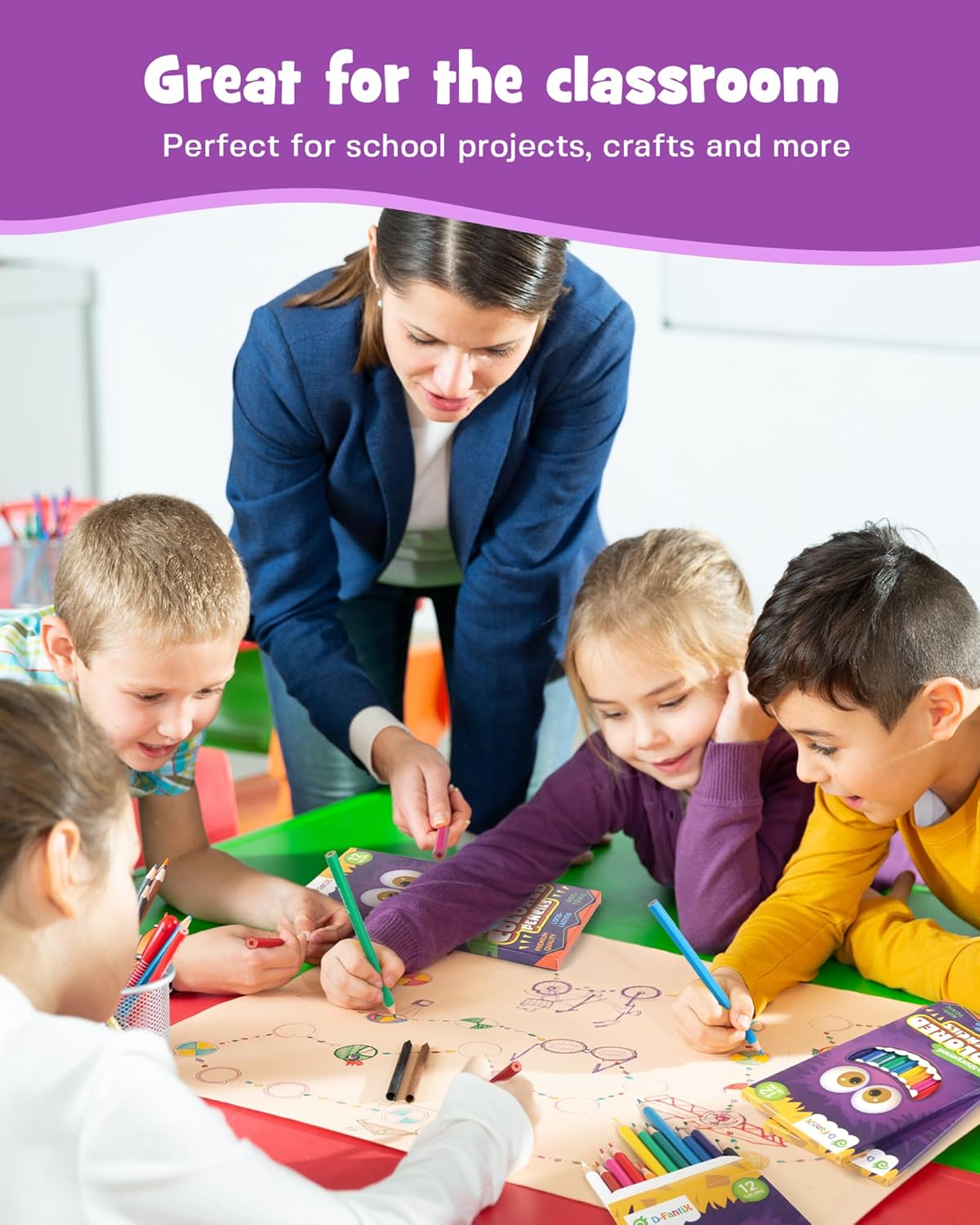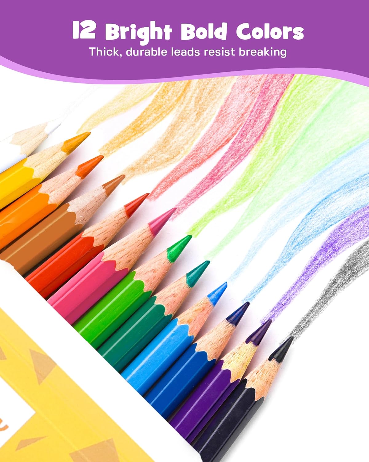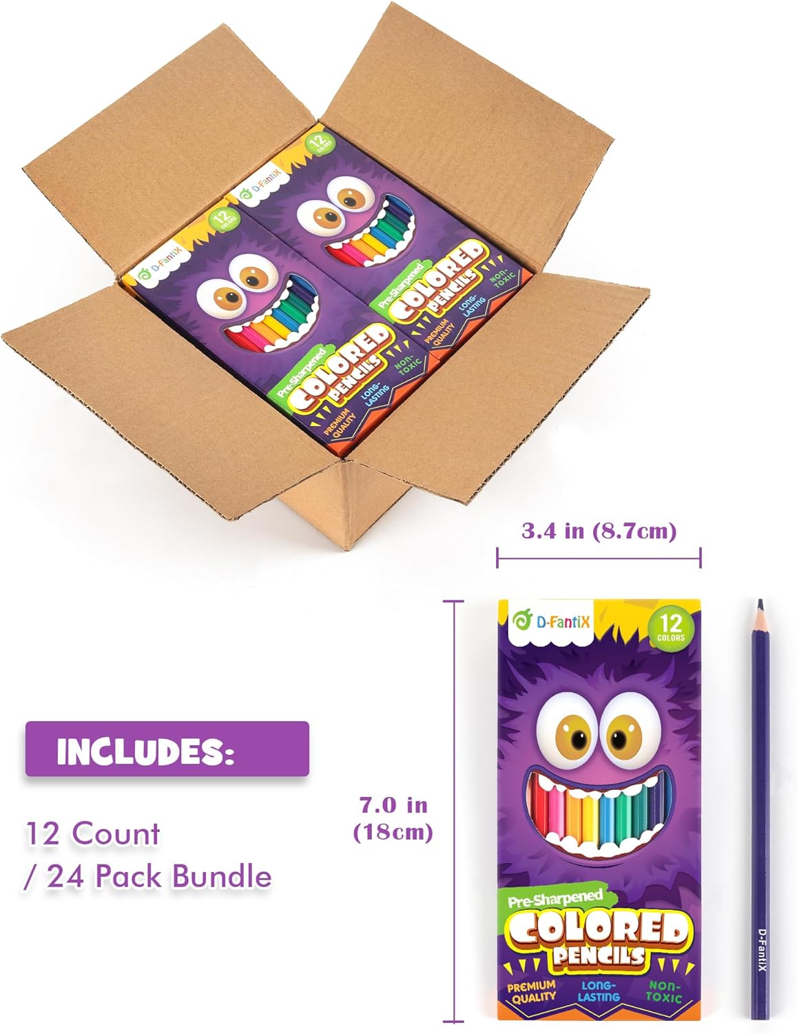 Matite colorate di grande valore in blocco: 288 matite colorate, 24 confezioni da 12 matite colorate in blocco. Perfette come forniture in classe per gli insegnanti. E ideale per i centri di beneficenza delle chiese per fornire materiale a chi ne ha bisogno 12 colori vivaci: Il set di 12 matite colorate è disponibile in una varietà di colori ricchi e vibranti. Tra cui rosso, arancione, giallo, verde giallo, verde, blu cielo, blu, viola, rosa, bianco, nero, marrone. Colori ricchi per soddisfare le esigenze dei creatori Set di matite colorate pre-affilate: Pronti per l'uso appena tolti dalla scatola, questi articoli per il disegno artistico sono pre-affilati per comodità e per farvi risparmiare tempo, consentendovi di creare disegni dettagliati e illustrazioni vivaci con facilità Resistenti alla rottura: nuclei spessi di eccellente qualità che evitano frustranti rotture durante l'uso e l'affilatura. Le ricariche di qualità superiore consentono di dipingere in modo fluido e semplice. Adatti per un uso prolungato Regalo ideale per i bambini: i design interessanti delle confezioni sono più popolari tra i bambini. Ogni confezione di matite colorate da 12 pezzi viene fornita in una scatola individuale per una facile distribuzione. Ottimo regalo per feste di compleanno, Halloween e Natale, perfette anche come materiale didattico per insegnanti, materiale scolastico estetico.
