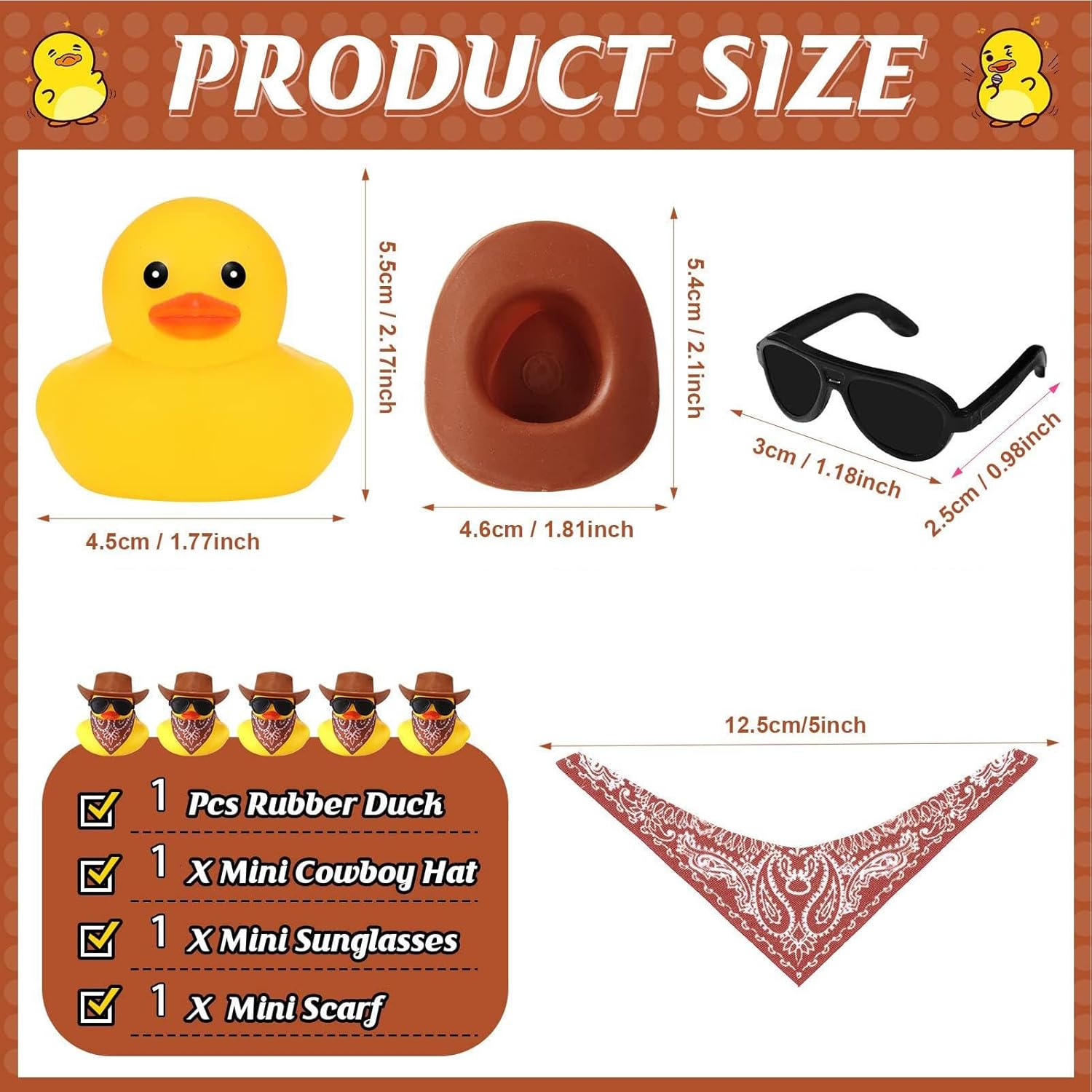 Personalizza la tua papera da cowboy con mini occhiali da sole, sciarpa di jeans, cappello e altro ancora. Diventa creativo e vestilo a tuo piacimento oppure aggiungi decorazioni fai-da-te uniche per il divertimento e il gioco. Materiale selezionato: regala al tuo cowboy o cowgirl un compagno giocoso realizzato in gomma di alta qualità. La nostra papera di gomma da cowboy è sicura, inodore e realizzata con una consistenza morbida ed elastica per un divertimento e un comfort duraturi. Ottimo per l'esterno: questa papera di gomma da cowboy è il compagno ideale per la tua prossima avventura. Grazie alle sue dimensioni compatte e al design facile da maneggiare, puoi portarlo durante escursioni, viaggi in campeggio e altro ancora. Conservalo in tasca o in borsa per divertirti in movimento! Ampia gamma di usi: aumenta il fattore divertimento delle feste in piscina, dei giochi a premi, degli oggetti di scena per le foto, per riempire sacchetti regalo con papere di gomma da cowboy. E non è tutto. Dai un tocco eccentrico alle feste di compleanno, alle celebrazioni natalizie e alle feste di benvenuto per con queste versatili decorazioni. Regalo fantastico: questa papera di gomma da cowboy non è il normale giocattolo da bagno. Ha un cappello , una bandana e un distintivo da sceriffo, che lo rendono un fantastico regalo per adulti e bambini che amano i temi western. Sia che la usi per decorare o per giocare, questa papera ti farà sorridere.