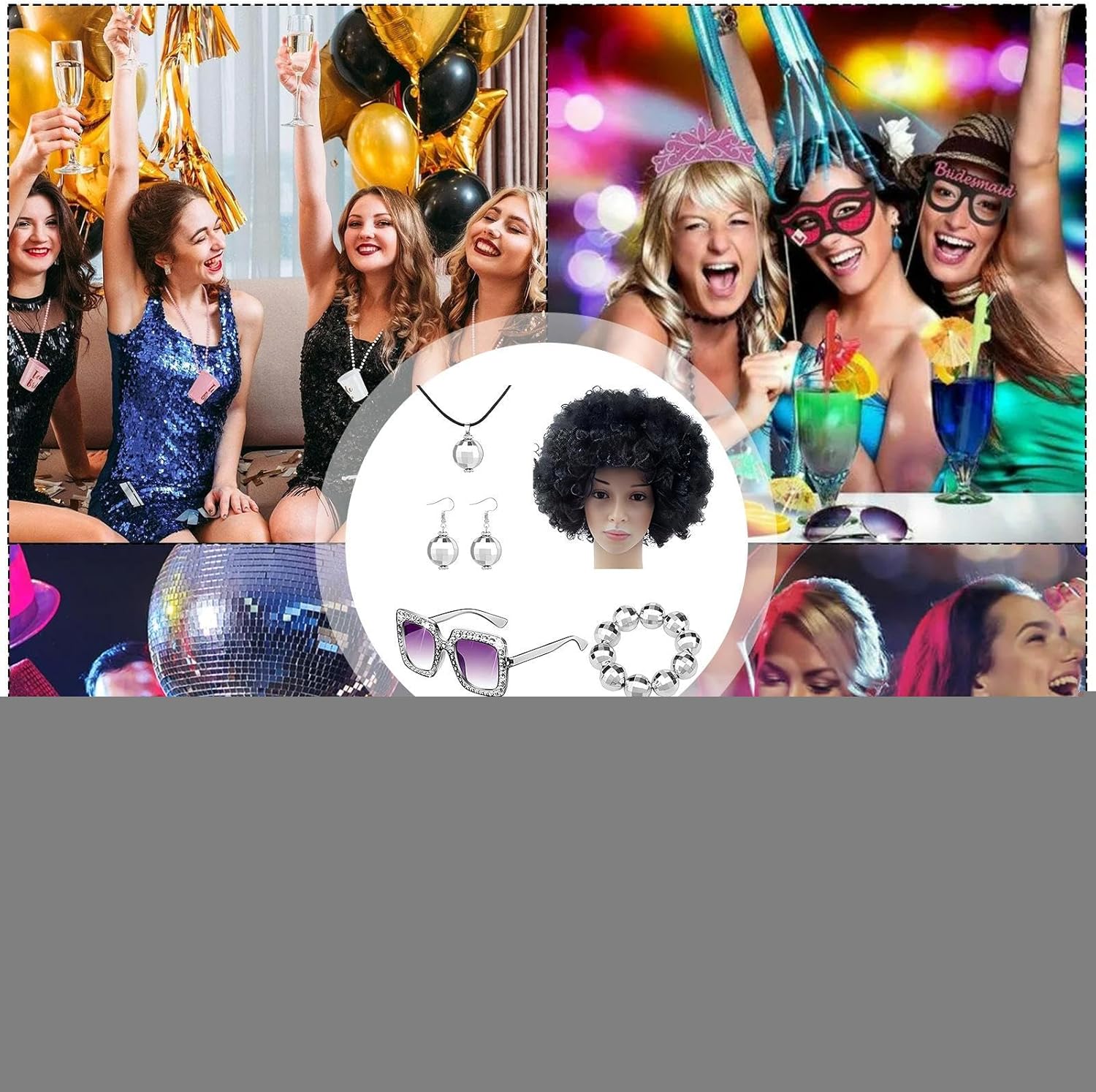 da discoteca anni '70,per costumi da discoteca - Costume da rapper scintillante Set di costumi da anni '70 da 5 pezzi | Costume da rapper con parrucca afro, braccialetto, occhiali