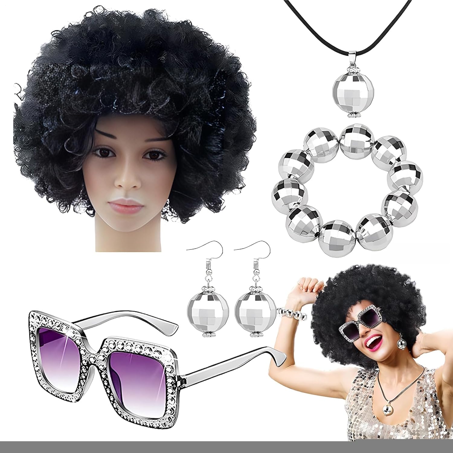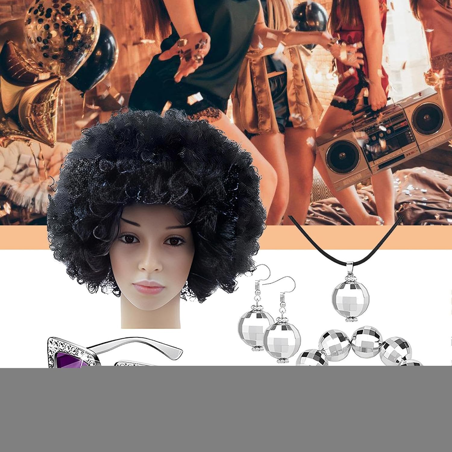 Descrizione prodotto Diventa alla moda con i nostri da discoteca anni '70 da donna! Questa collana con sfera da discoteca in 1 pezzo è perfetta per qualsiasi festa in discoteca. Fai brillare i tuoi orecchini sulla pista da ballo con la loro forte lucentezza e la luce brillante. È un regalo squisito per ogni diva della discoteca! Specifica: Nome: set di da discoteca da donna degli anni '70 Materiale: fibra sintetica + PP Dimensioni del prodotto: come mostrato nell'immagine Peso: circa 230 g Lista imballaggio: Capelli corti e ricci anni '70 x1 Orecchini con sfera da discoteca x1 paio Collana con palla da discoteca x1 Bracciale con palla da discoteca x1 Occhiali da sole con montatura x1 Nota: 1. A causa dei diversi effetti di visualizzazione e di illuminazione, il colore effettivo del prodotto potrebbe essere leggermente diverso dal colore mostrato nell'immagine. Grazie! 2. A causa della misurazione manuale, è consentita una deviazione di misurazione di 1-3 cm. Avviso di sicurezza Non applicabile