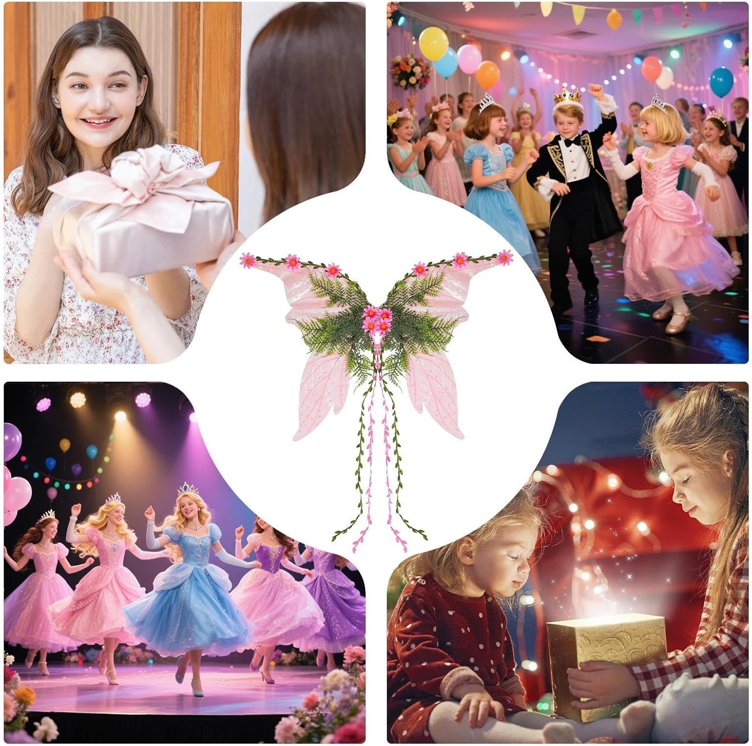 Incantevole effetto bagliore: costume da ala da fata arricchito da un effetto bagliore, perfetto per spettacoli teatrali e notti fantasy, elevando il tuo look con accattivanti accessori cosplay Comoda attrezzatura per cosplay: caratterizzate da un design adattabile, queste ali da fata offrono una vestibilità sicura e sono realizzate con materiali traspiranti per un uso confortevole durante le avventure fantasy Multiuso: progettate come accessori per spettacoli teatrali e accessori per fototarget fantasy, queste ali da fata aggiungono fascino alle ali della tua festa in costume completando uno splendido vestito scintillante per un set di costumi da fata che ispira l'immaginazione Solida struttura dell'ala: progettate con arte meticolosa, queste ali da fata vantano decorazioni con paillettes che producono un affascinante effetto scintillante, rendendole una scelta eccellente per spettacoli in cui eleganza e design accattivante sono requisiti indispensabili Condividi con la famiglia: progettato con cura, questo set di ali da fata si adatta agli amanti dei costumi e funziona come bomboniere a tema, creando un'esperienza eccellente, sia come regalo di fantasia per lei che come regalo di compleanno a sorpresa