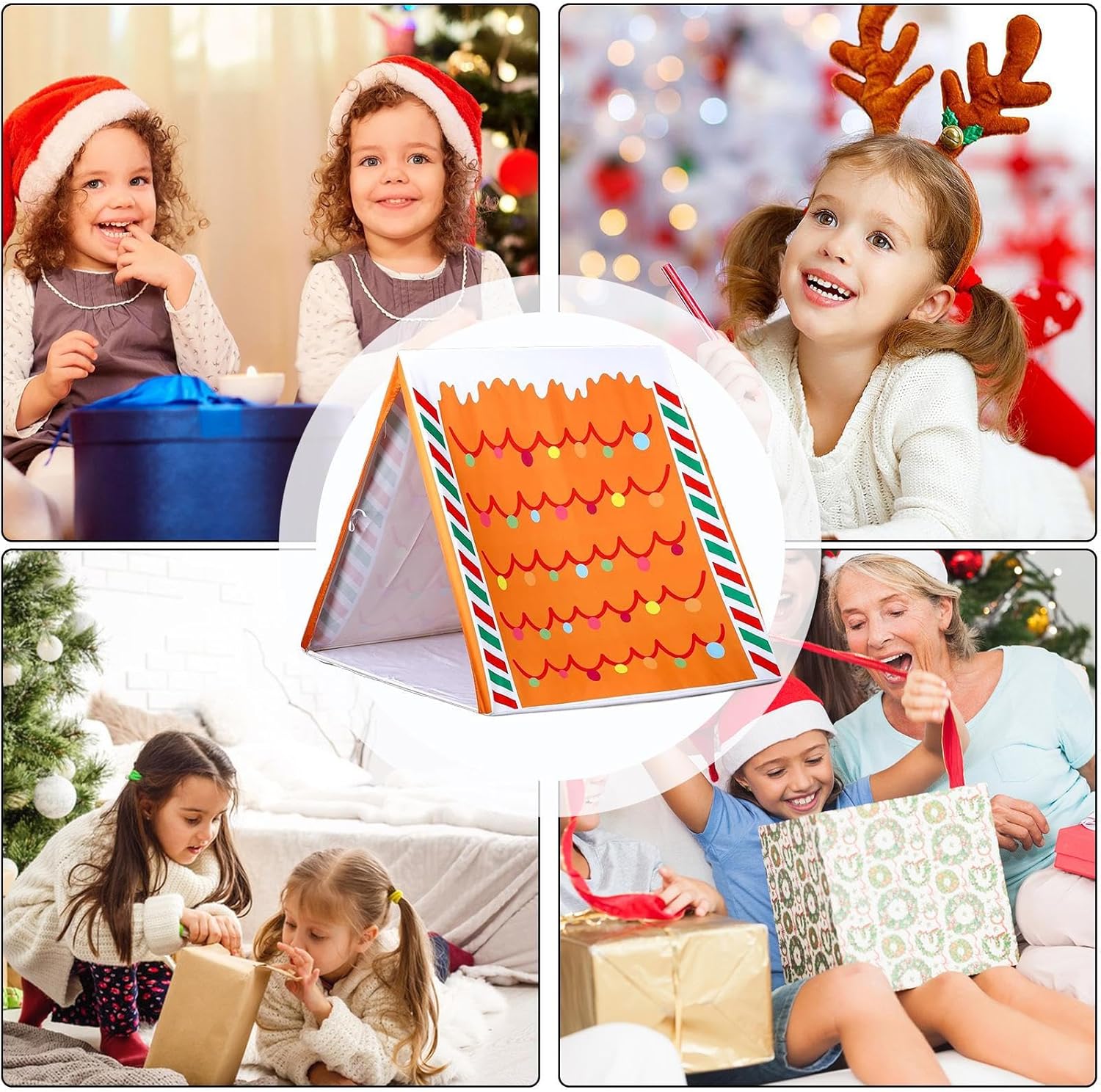 Montaggio facile e veloce: la struttura della tenda da gioco è semplice e viene fornita completamente senza attrezzi dispendiosi. Ciò consente di risparmiare tempo prezioso e fatica, consentendo ai bambini di godersi immediatamente il loro gioco immaginativo in ambienti interni ed esterni. La facilità d'uso consente una configurazione senza problemi e favorisce lo sviluppo creativo in qualsiasi ambiente senza ritardi. Telaio resistente e design arioso: la tenda da gioco natalizia integra forti telai in PP abbinati a tessuti morbidi e traspiranti, che creano un ambiente ideale per i bambini per esplorare il gioco creativo all'interno o all'esterno rimanendo sempre rinfrescati e soddisfatti tutto l'anno, con un equilibrio di stabilità e ventilazione per un divertimento duraturo nel gioco. Divertente luogo di incontro: questa tenda natalizia per bambini porta molta gioia e crea uno spazio speciale in cui i bambini possono godersi le storie della buonanotte, condividere la cioccolata calda al mattino presto o trascorrere il tempo di qualità durante le feste in famiglia. Diventa così il luogo ideale per memorabili ricordi di Natale e un'atmosfera festosa, che rende le vacanze ancora più magiche e può essere utilizzata regolarmente per attività divertenti. Atmosfera giocosa: la tenda natalizia crea un ambiente creativo in cui i bambini esplorano la loro immaginazione e sperimentano il divertimento interattivo. Stabilisce un'atmosfera accogliente e allegra, ideale per feste al chiuso o attività invernali nel periodo natalizio, promuovendo così esperienze di gioco comuni. Aree di gioco versatili: progettata con più aree come soggiorno, studio e camera dei bambini, questa casa di Natale incoraggia il gioco interattivo, aiuta i bambini a sviluppare l'immaginazione e le abilità sociali attraverso attività dinamiche al chiuso nel periodo natalizio. Offre varie opzioni di gioco per lo sviluppo creativo e divertenti esperienze di apprendimento che rafforzano l'immaginazione e il senso della comunità in un'atmosfera festiva.