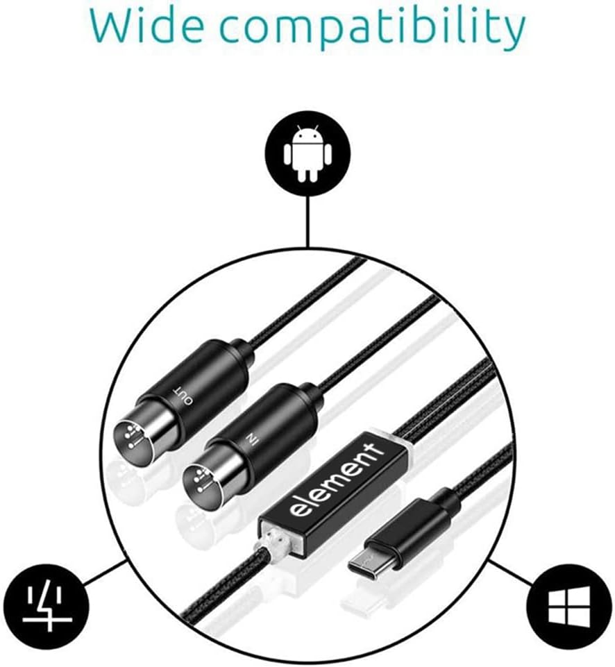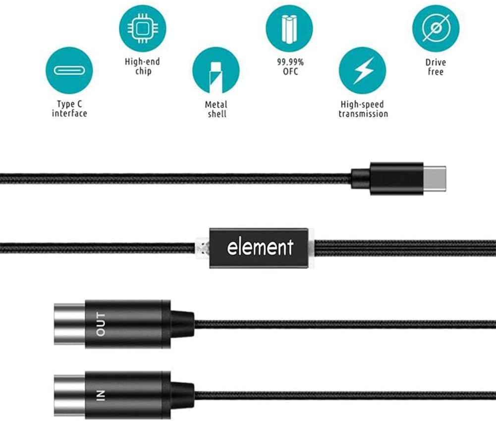 100% di zecca e di alta qualità. Basta collegarlo a una presa di tipo C del computer per l'installazione automatica del driver. Supporta i XP, Vista Win7 e Facile trasformare il tuo PC in studio musicale, inizia collegando una tastiera musicale al tuo computer con il MIDI di tipo C in dotazione. Il LED indica l'accensione, il segnale MIDI in e il segnale MIDI in uscita.