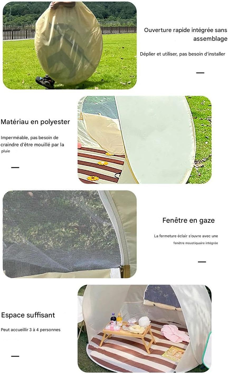 Distribuzione intuitiva: meccanismo di apertura espresso che elimina qualsiasi procedura complicata. Facile da montare in momenti per una forma ottimale e un beneficente fin dall'installazione sulla spiaggia. Portabilità ingegnosa: tenda da spiaggia portatile ad automatica per trasporto e stoccaggio senza sforzo. Design compatto che elimina qualsiasi complicazione durante i viaggi o lo stoccaggio, ideale per i viaggi. Affidabile resistenza al vento: la tecnologia di ancoraggio antivento brevettata garantisce la massima stabilità e una tenuta duratura anche in condizioni difficili di spiagge ventose e dune di sabbia. Applicazioni: Che si tratti di un picnic, una pausa in campeggio, giochi di o una giornata in spiaggia, questa leggera tenda da spiaggia funge da rifugio versatile. La sua utilità ottimizzata migliora il comfort in diverse cornici ricreative esterne con installazione rapida. Comfort climatico: design a flusso d'aria naturale con pannelli in mesh che bloccano i raggi UV, fornendo una piacevole sensazione corporea sotto la tenda pieghevole da spiaggia