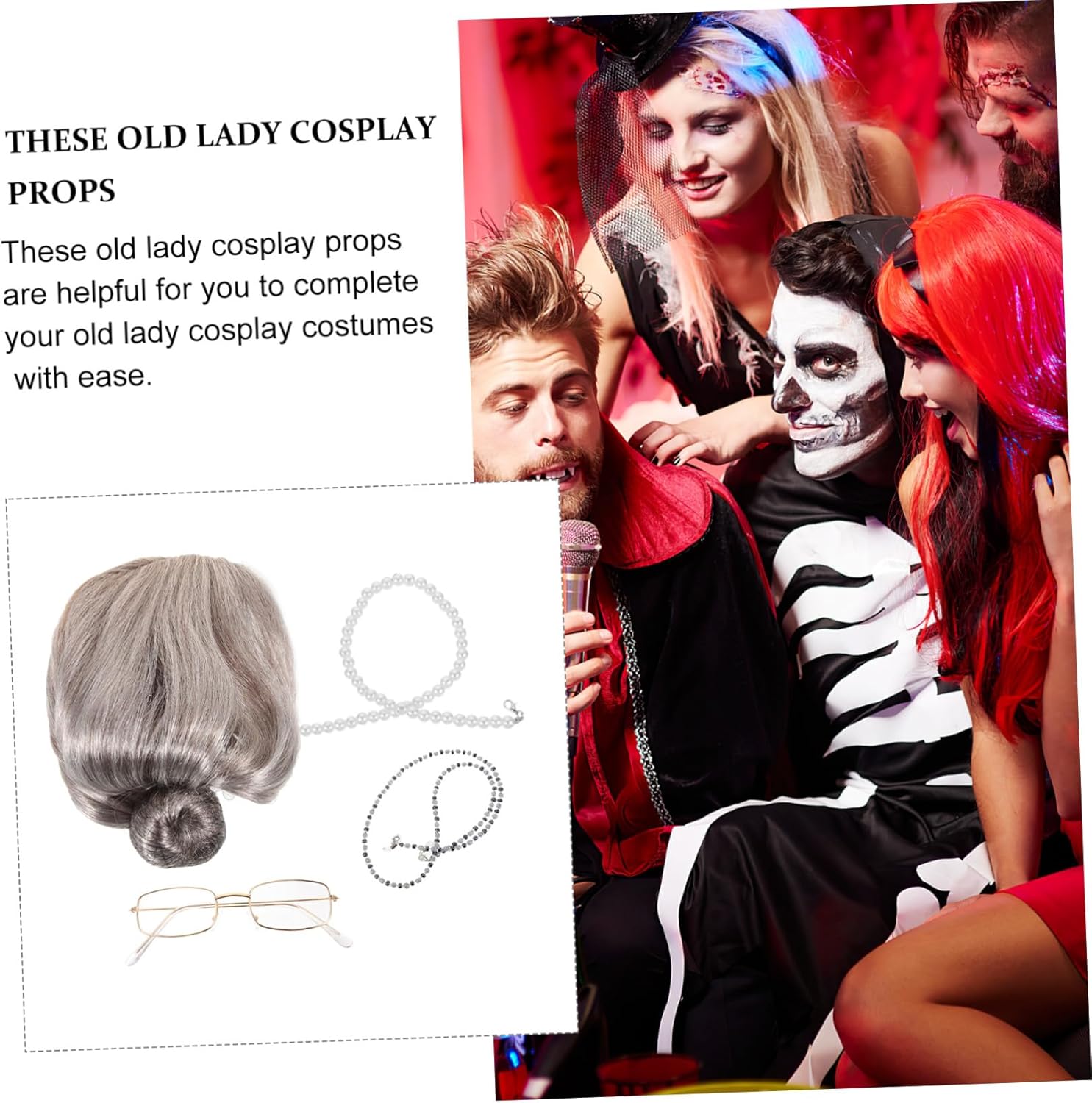 Costume da nonna per halloween: perfetto per feste in maschera, feste a tema, cosplay, halloween o qualsiasi evento speciale, parrucche per donne anziane Kit cosplay da vecchia signora: questo set cosplay da vecchia signora contiene una parrucca, occhiali, una per occhiali e una collana di pere finte, un kit completo di accessori per il costume cosplay da vecchia signora, parrucche da vecchia signora Parrucche divertenti per donne: varietà di luoghi applicabili, in casa o all'aperto, alle feste o per tutti i giorni, divertenti e multiuso, da nonna Parrucche in costume: l'atmosfera della festa in maschera, possono essere utilizzate come una buona decorazione per rendere la tua festa più interessante, parrucche per donne Costume da vecchia signora: questi nuovi e divertenti oggetti di scena per cosplay e spettacoli teatrali da vecchia signora possono essere usati per il cosplay, costume da vecchia signora.