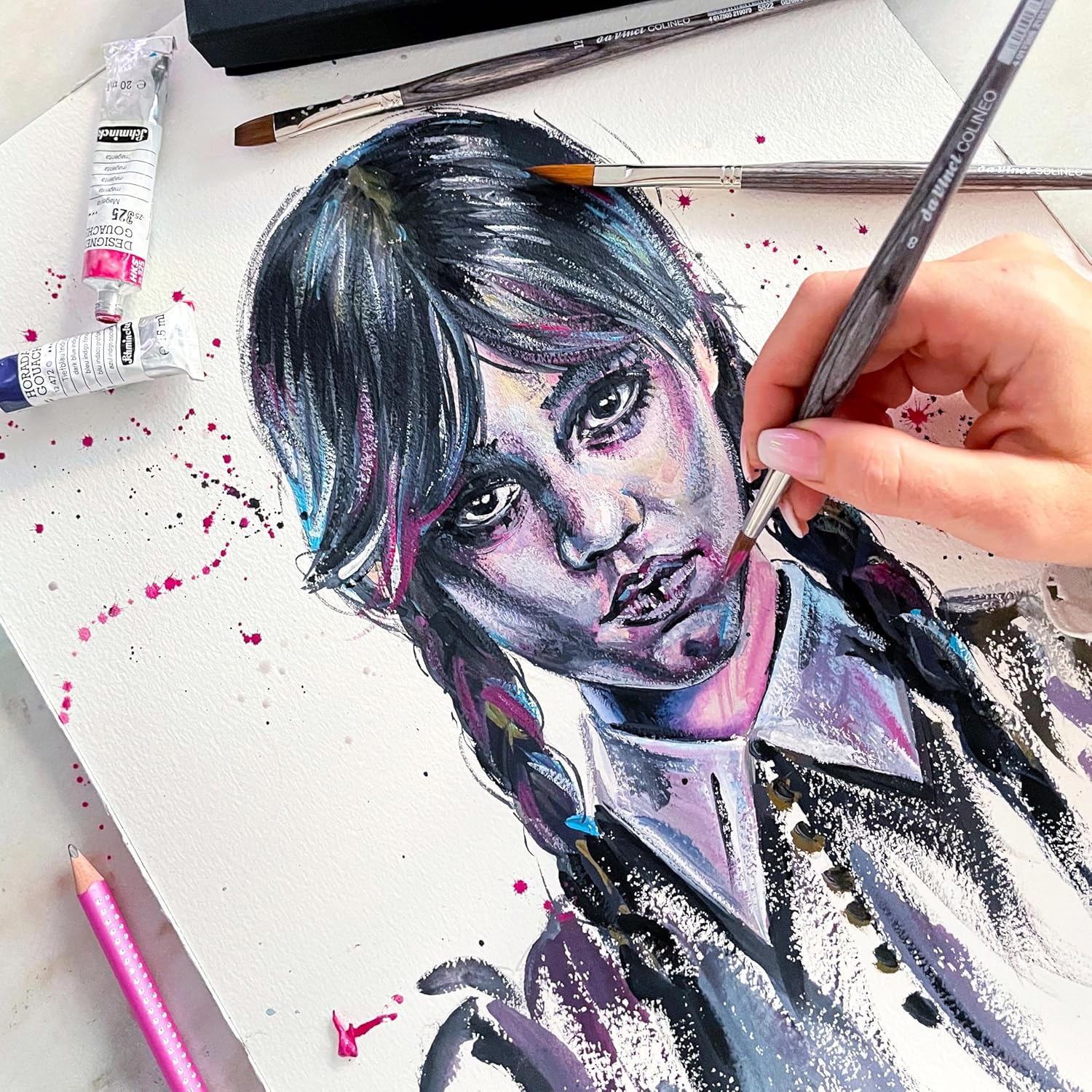 Composizione in fibra: Colineo utilizza una miscela accuratamente bilanciata di fibre sintetiche dritte e ondulate con punte extra fini, punta precisa, elevata elasticità e assorbimento del colore. I pennelli sono dotati di manici esagonali in compensato multicolore Hi-tech resistente all'acqua. Questi steli impediscono al pennello di rotolare via e offrono una presa sicura per dipingere senza fatica. Versatilità: perfettamente adatto per la pittura ad acquerello e per la pittura precisa con colori acrilici liquidi, per offrire una vasta gamma di possibilità creative e flessibilità stilistica per gli artisti. Somiglianza con i capelli naturali: la composizione delle fibre di Colineo è molto vicina alle caratteristiche dei pennelli Kolinsky con setole di martora rossa, senza la rarità e il prezzo del materiale naturale. Lunga durata: questi pennelli offrono una qualità duratura e prestazioni affidabili grazie alla loro composizione in fibra di alta qualità, appositamente progettata per applicazioni artistiche.