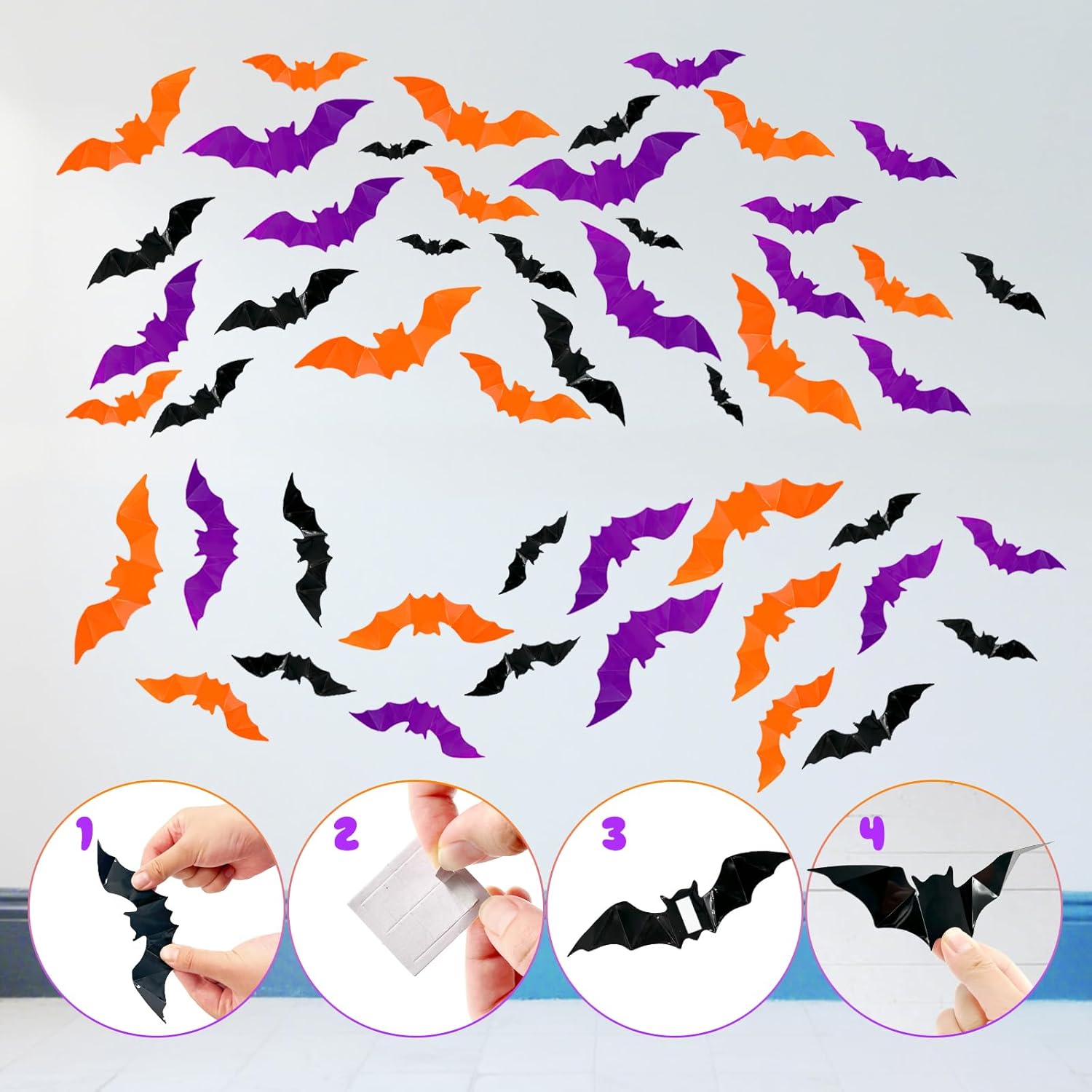 【Combinazione di Nero, Arancione e Viola - Atmosfera Halloween Suggestiva】Crea un'atmosfera unica e misteriosa con i nostri Cappelli da Strega Appesi tricolori (Nero/Arancione/Viola) e i Decoratori Murari 3D a forma di Pipistrello. Appendi questi dinamici cappelli da strega a soffitti o alberi utilizzando il cordino trasparente per un effetto 'fluttuante' incredibile, mentre i pipistrelli coordinati impreziosiscono pareti e mobili. Questo set ad alto contrasto amplifica le decorazioni per feste di Halloween con vibrazioni drammatiche e maligne 【Kit Decorativo Completo da 71 Pezzi - Valore Spettrale】Questo bundle di decorazioni sospese per Halloween offre un valore eccezionale: 15 vibranti Cappelli da Strega Appesi (5 Neri, 5 Arancioni, 5 Viola), 48 vivaci pezzi di Decorazioni Murarie 3D di Pipistrelli (16 per colore, 4 dimensioni) e 150m/492 ft di resistente cordino trasparente: abbastanza per allestimenti in più location. Decora facilmente portici, giardini, uffici o condividi con i vicini per decorazioni murali di Halloween uniformi, eliminando acquisti separati. 【Tessuto Oxford Resistente - Comodo da Indossare ed Esporre】Realizzati in tessuto Oxford di qualità a colori resistenti, questi cappelli da strega offrono durata per essere appesi ripetutamente durante la stagione di Halloween e per un potenziale uso come copricapo per feste. Il materiale è leggero ma robusto, mantenendo bene la sua classica forma a cono per un'efficace visualizzazione fluttuante. 【Sospensione Semplice e Conservazione in Spazio Minimoo】Ottieni un effetto fluttuante fantasma in pochi minuti: fora la punta del cappello (con ago/penna), fai passare il cordino, annoda saldamente e appendi dove vuoi. Il cordino da 150m/492 ft permette variazioni creative di altezza per le decorazioni sospese di Halloween. Dopo la stagione, la conservazione appiattita torsa preserva la forma occupando spazio minimo. 【Versatilità per Molte Scene - Essenziale per Decorazione e Costume】Oltre all'incantevole effetto sospeso, usa gli adesivi Decoratori Murari 3D di Pipistrelli su specchi e mobili per decorazioni murali gotiche di Halloween.Trasforma portici, uffici o eventi in zone tematiche con questo sistema di decorazioni per feste di Halloween definitivo.