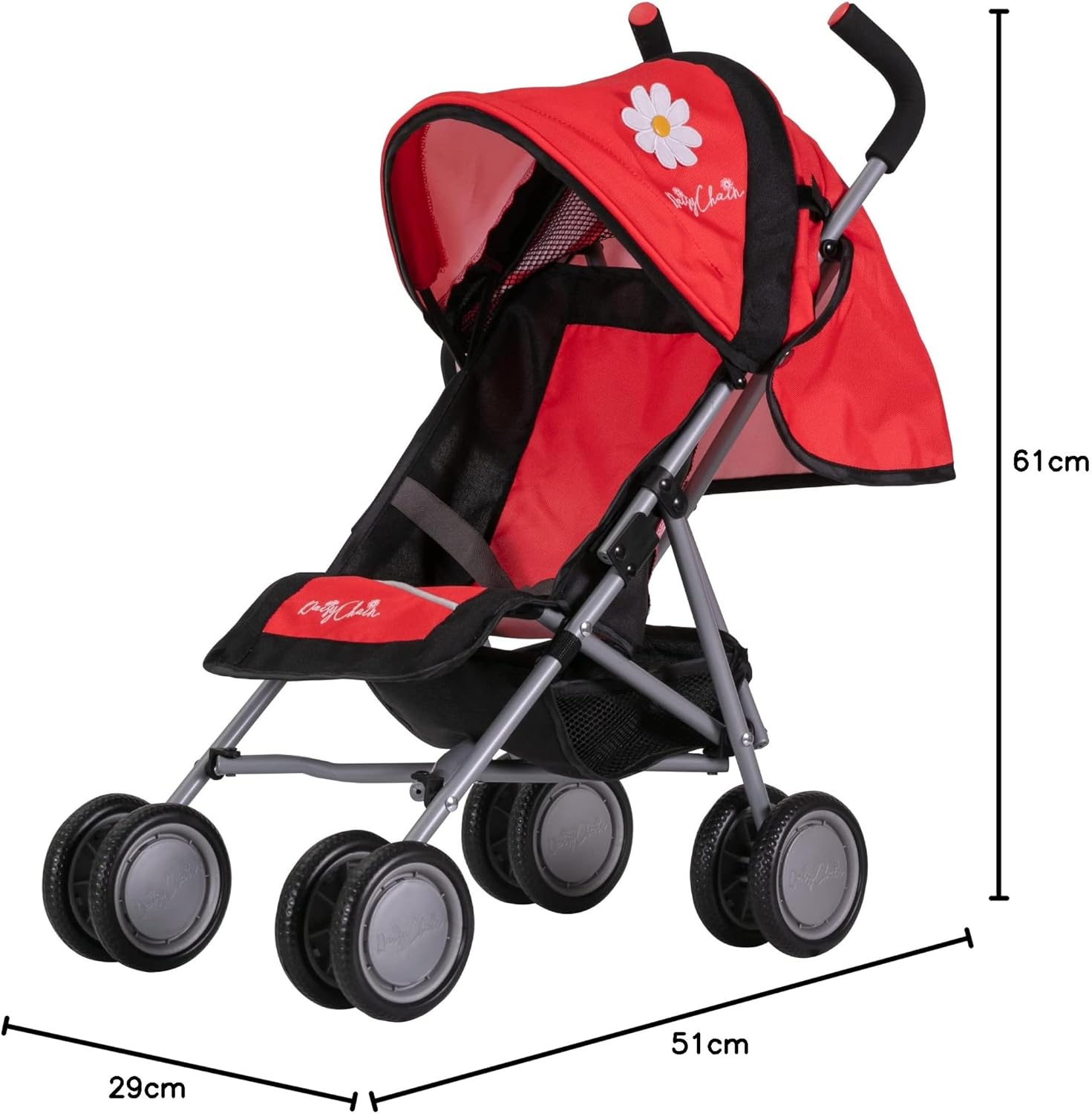 Per i più piccoli che amano stare all'aperto, il passeggino per bambole Daisy Chain Little Zipp è tutto ciò di cui hanno bisogno! Raccomandata per Bambini dai 18 Mesi ai 3 Anni. Il passeggino Little Zipp ha i manici a un'altezza di 61 cm ed è adatto per una bambola di lunghezza non superiore ai 46 cm. Include un comodo cestino portaoggetti e il passeggino può essere piegato per riporlo con facilità.