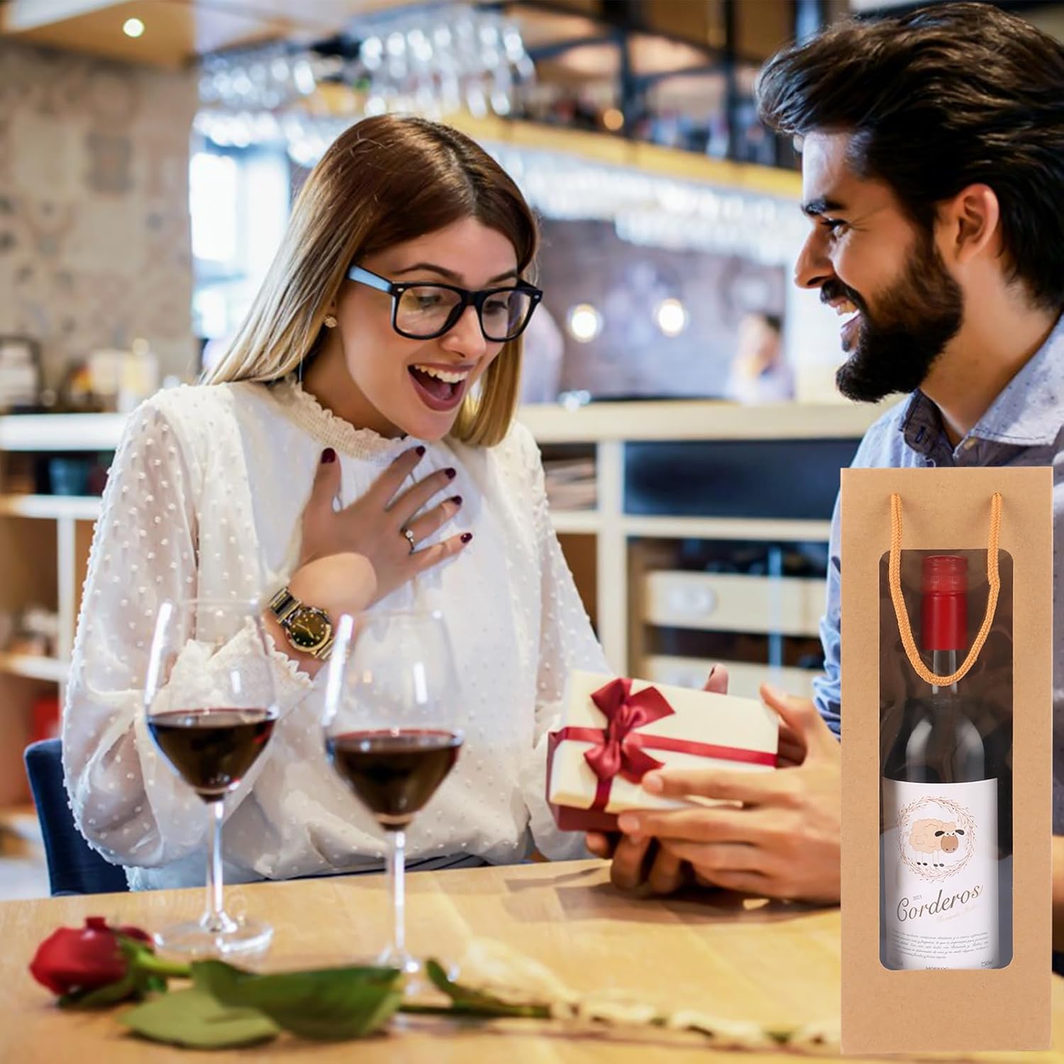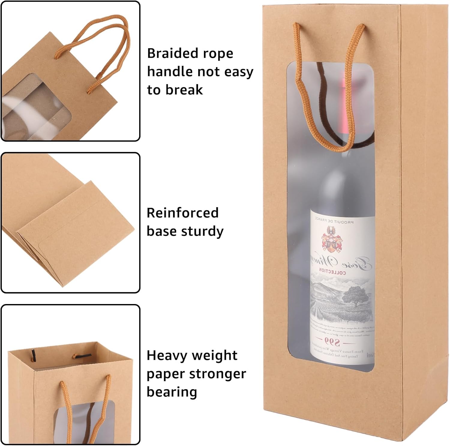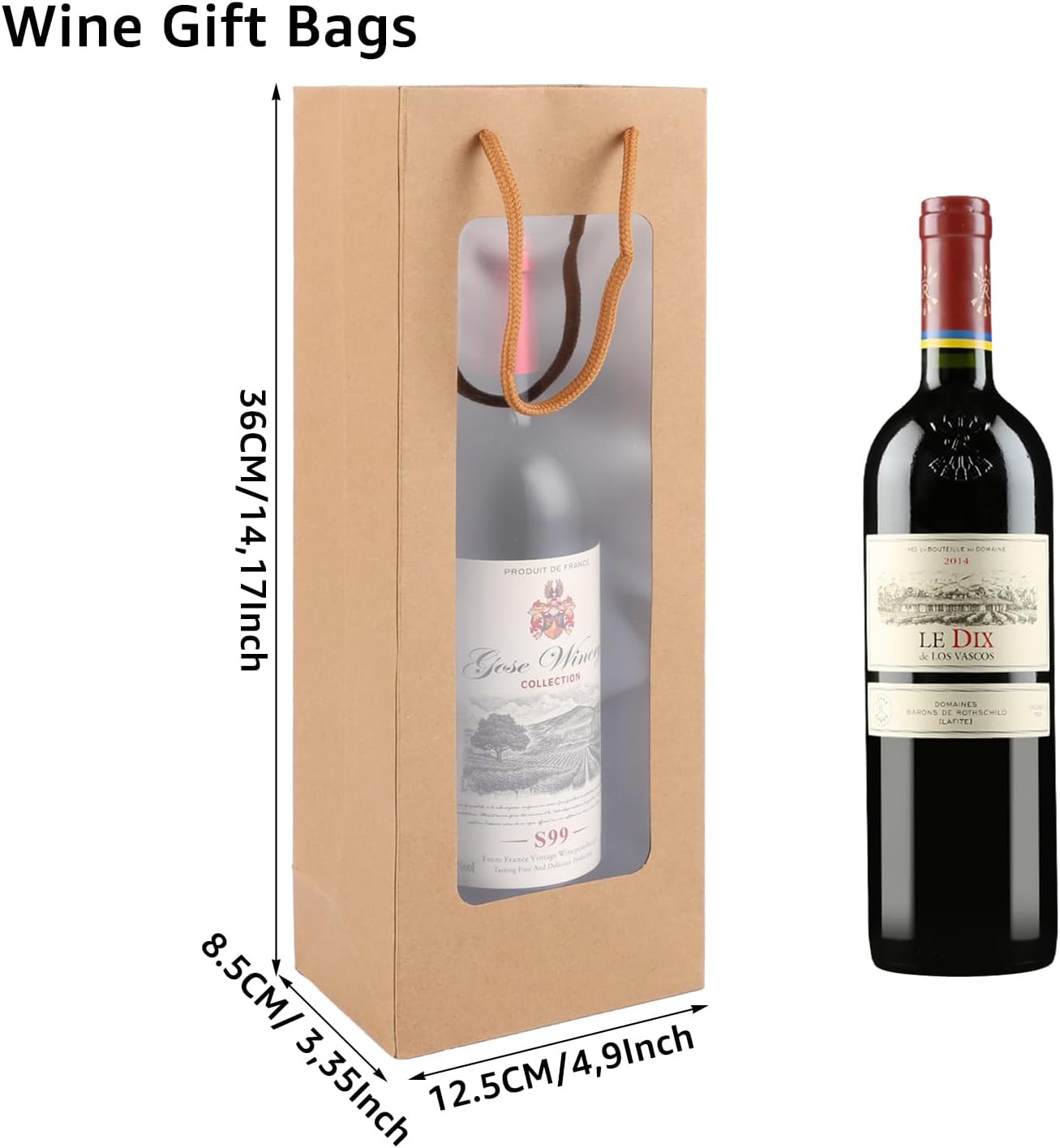 【Ricca quantità】 Riceverai 20 bottiglie di sacchetti regalo, tutte realizzate in pelle di vacchetta; Bastano quantità abbondanti e colori classici per soddisfare le vostre esigenze di confezionamento; Puoi anche condividerli con la tua famiglia. 【Dimensioni】Le bottiglie dei sacchetti regalo misurano circa 12,5x8,5x36 cm, che è la dimensione giusta per contenere la maggior parte delle bottiglie di vino; perfetto per conservare bottiglie di vino e può anche contenere regali e articoli al dettaglio. 【Alta qualità】 I sacchetti regalo per vino sono realizzati in carta kraft di alta qualità e manici in corda spessa, durevoli e robusti. Proteggi il tuo vino, regali e altri beni durante il trasporto senza preoccuparti di romperli. 【FINESTRA TRASPARENTE】 I sacchetti di vino per i regali di bottiglie di vino sono progettati con una finestra trasparente in modo da poter vedere il contenuto della borsa senza estrarlo, aggiungendo un tocco di raffinatezza ai tuoi regali di bottiglie di vino. 【Ampia applicazione】 Le borse per bottiglie sono adatte a varie occasioni, non solo per fare regali, ma perfette anche per prodotti al dettaglio per migliorare l'esposizione delle bottiglie di vino. Possono essere utilizzati anche come sacchetti per matrimoni, sacchetti per caramelle, sacchetti regalo di Natale, sacchetti regalo di San Valentino, ecc.