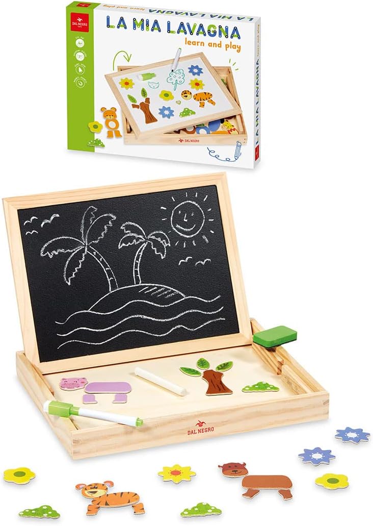 Gioco educativo per bambini: il mio tabellone impara e gioca aiuta a sviluppare la coordinazione occhio-mano e a sviluppare l'immaginazione, la creatività e l'immaginazione. Contenuto: il set contiene 1 lavagna bifacciale, 1 collezione di calamite a forma di animali, 1 scatola con gessetti, 1 pennarello e 1 gomma. Sicuro e affidabile: il mio tabellone Impara e gioca è realizzato in legno resistente con vernici atossiche. Rispetta tutti gli standard di sicurezza UN REGALO PERFETTO: ideale per un divertimento ancora più creativo dei bambini, come regalo di Natale o altra occasione speciale.
