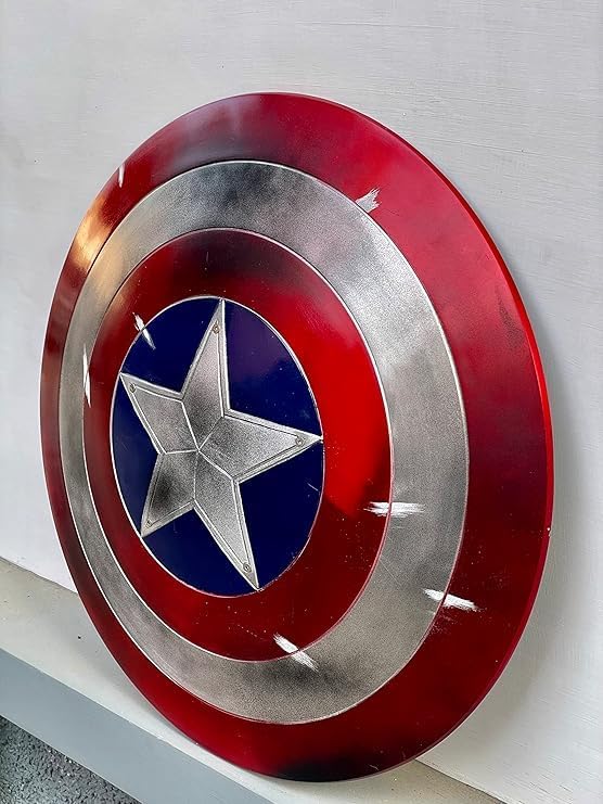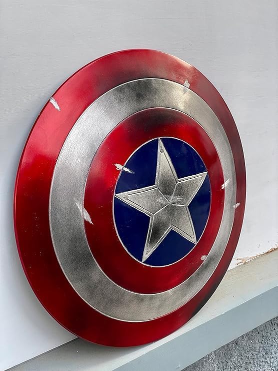 Descrizione prodotto Schermo accurato in metallo Capitan America Shield Replica per Cosplay e Display. Una replica autentica del puntello utilizzato in "Avengers: Endgame". Una linea di rottura accurata distingue questo scudo dal resto. Misura 22 pollici di diametro, pesa circa 8 libbre. È un ottimo peso per camminare intorno alle convenzioni con. È realizzato in alluminio con scanalature tra gli anelli proprio come quello reale. La stella è di alta qualità rispetto solo all'originale. Avviso di sicurezza Tenere lontano da acqua e umidità